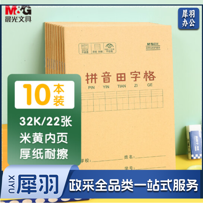 晨光(M&G)文具32K/22张小学生作业本 课业本 拼音田字格本簿 牛皮纸封面生字本铁钉本 10本装K32273B..
