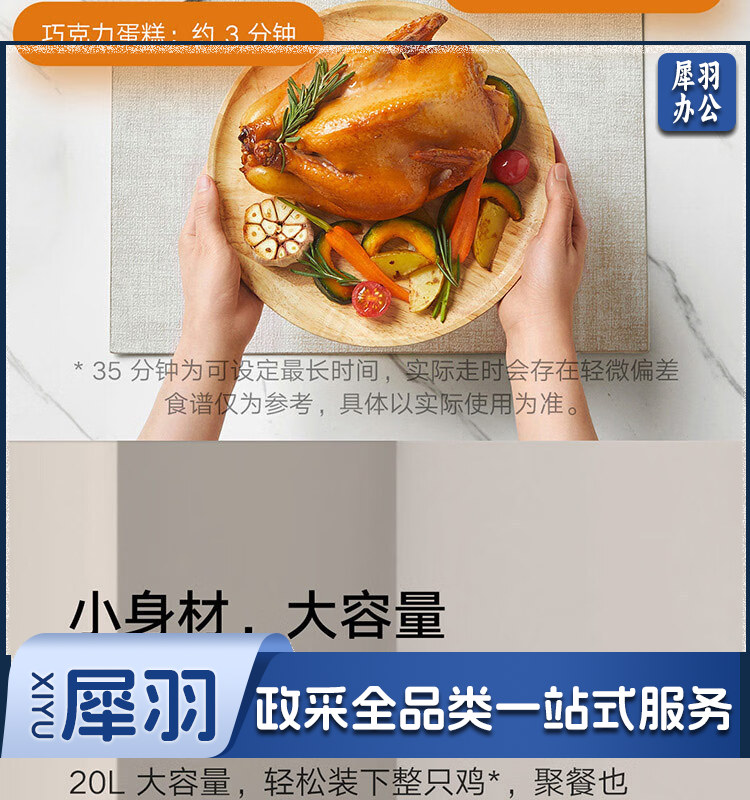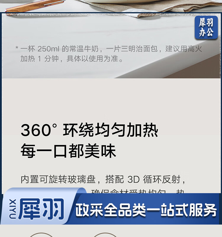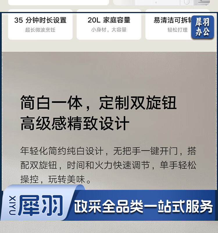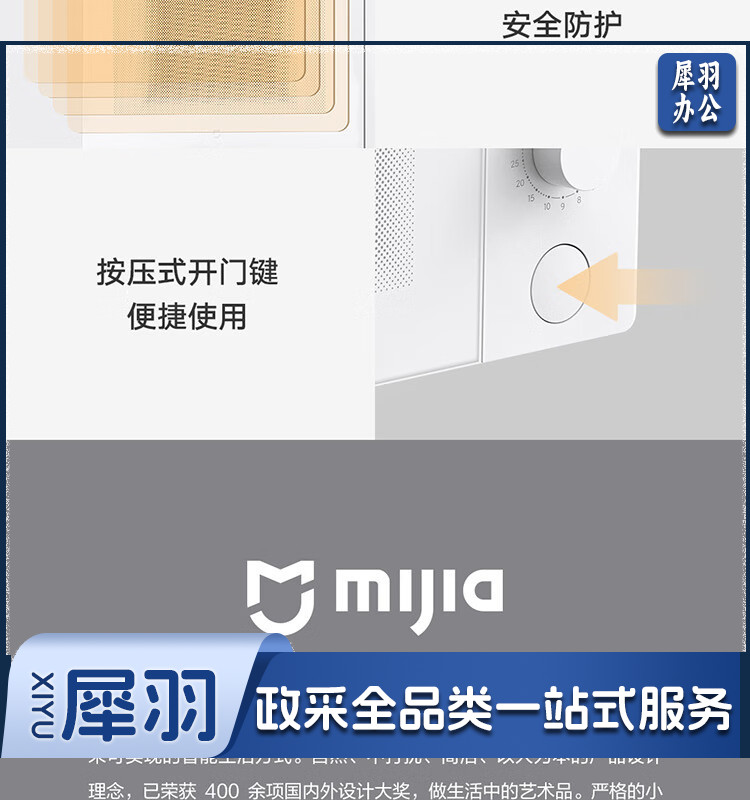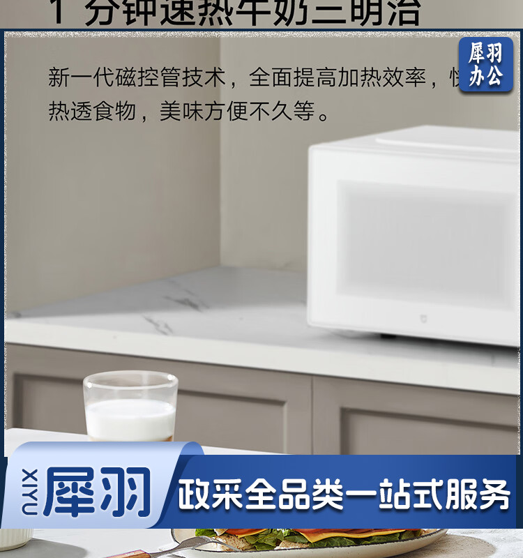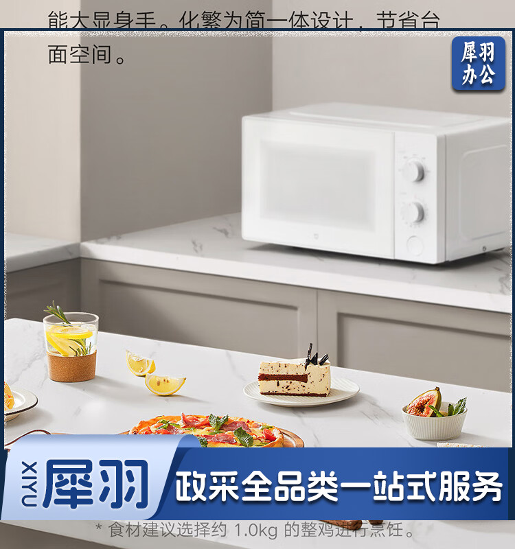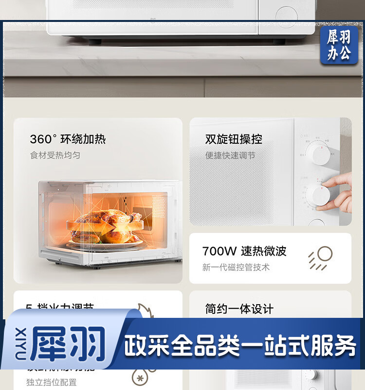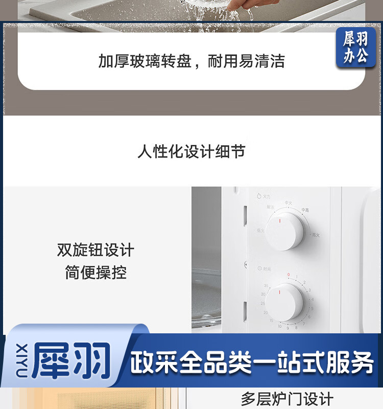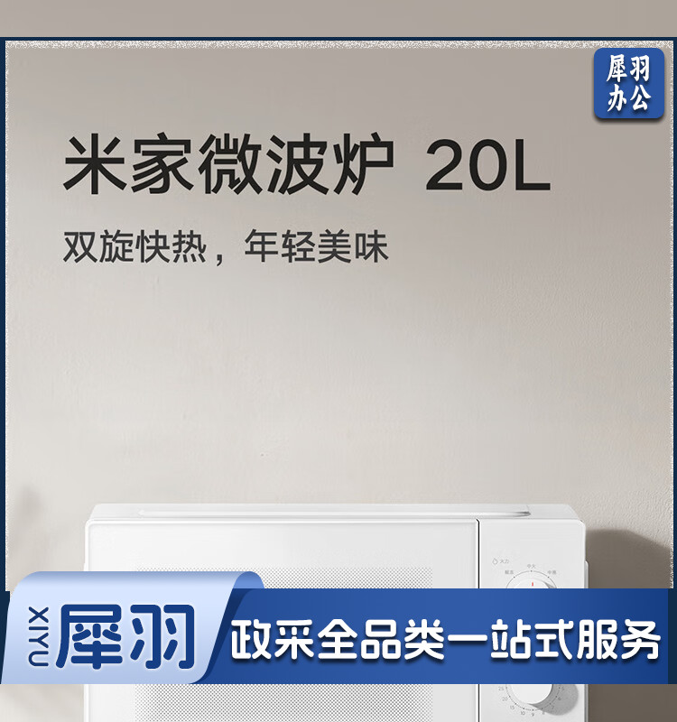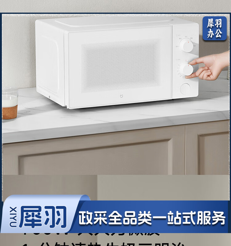 米家小米微波炉家用小型多功能 小尺寸可拆转盘式 大火力均匀加热 机械式双旋钮易操作 台式大容量20升