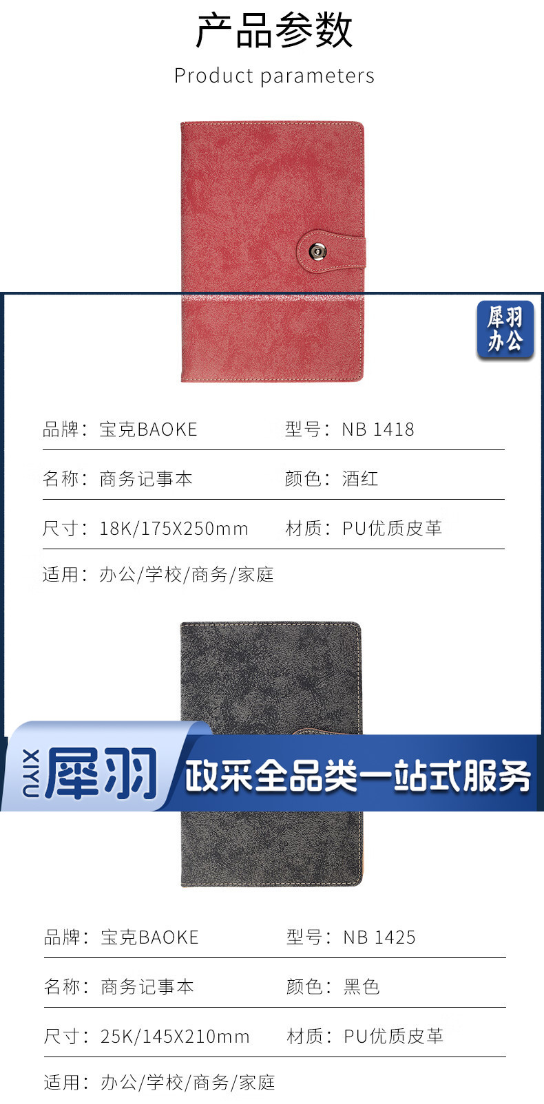 宝克(BAOKE) 本子 精装带扣 皮面本 高级简约记事本 学生 办公 笔记本 会议记录本 文具 会议记录本 棕色 18K NB2318