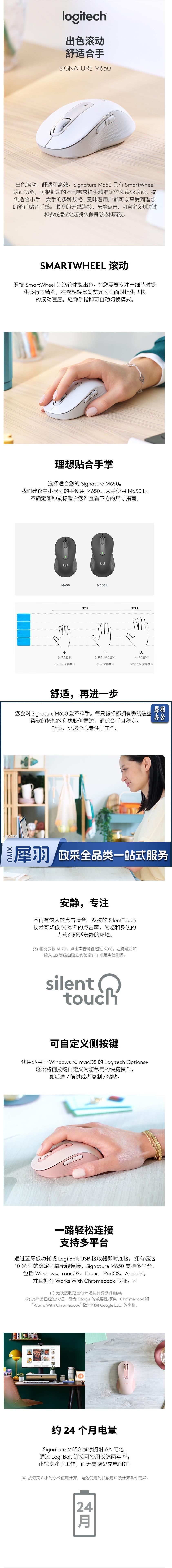 罗技 M650 M 双模静音鼠标 无线蓝牙鼠标 中小手型 白色