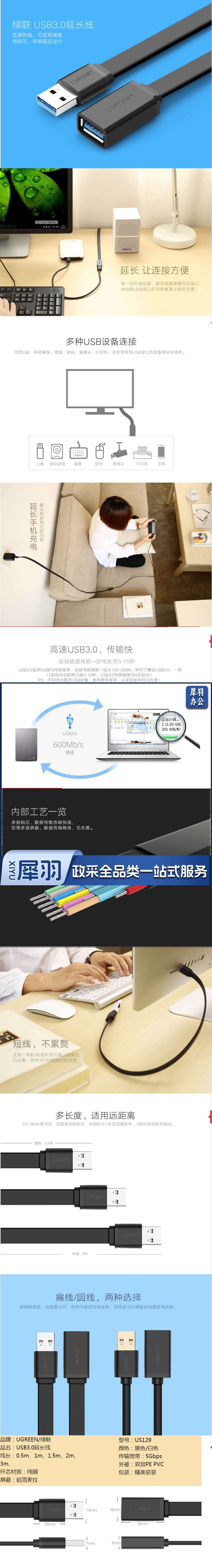 绿联(UGREEN)USB3.0延长线公对母 USB3.0数据线 电脑USB 鼠标键盘加长线 2米 黑色