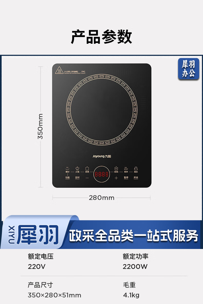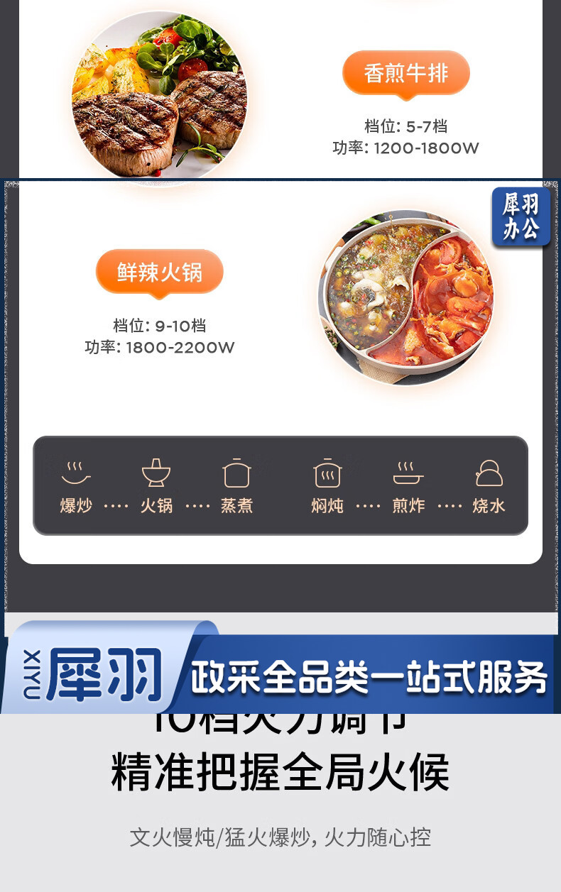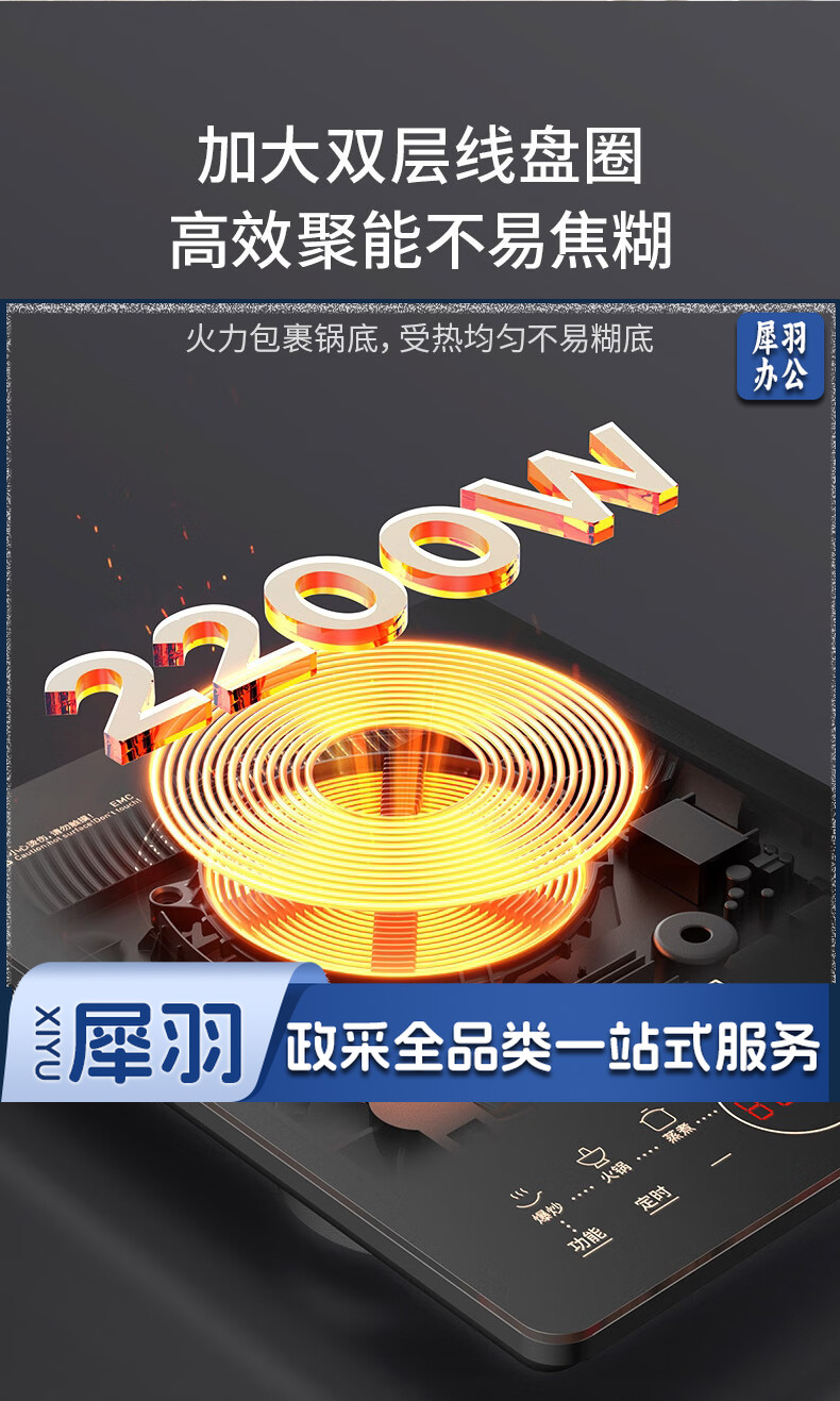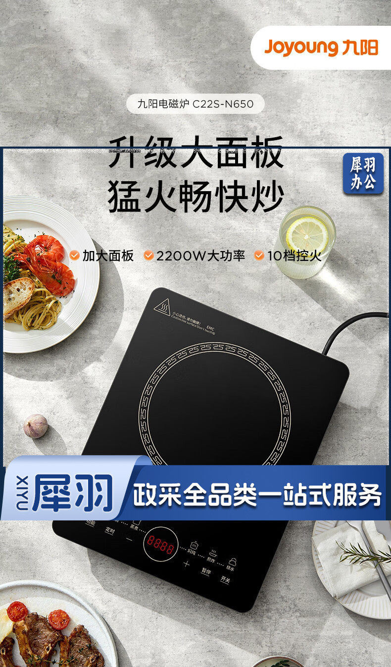 九阳(Joyoung)电磁炉电陶炉2200W大功率家用触控按键耐用面板十档火力纤薄定时功能电磁灶火锅炉C22S-N650