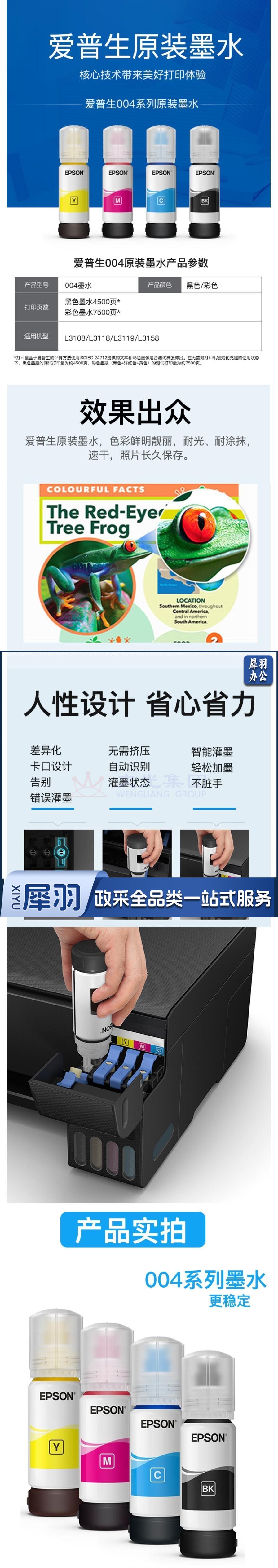 爱普生004青色 墨水适用L3153L3151L3251L3253L3118L3119L3158 T00U2-004原装墨水