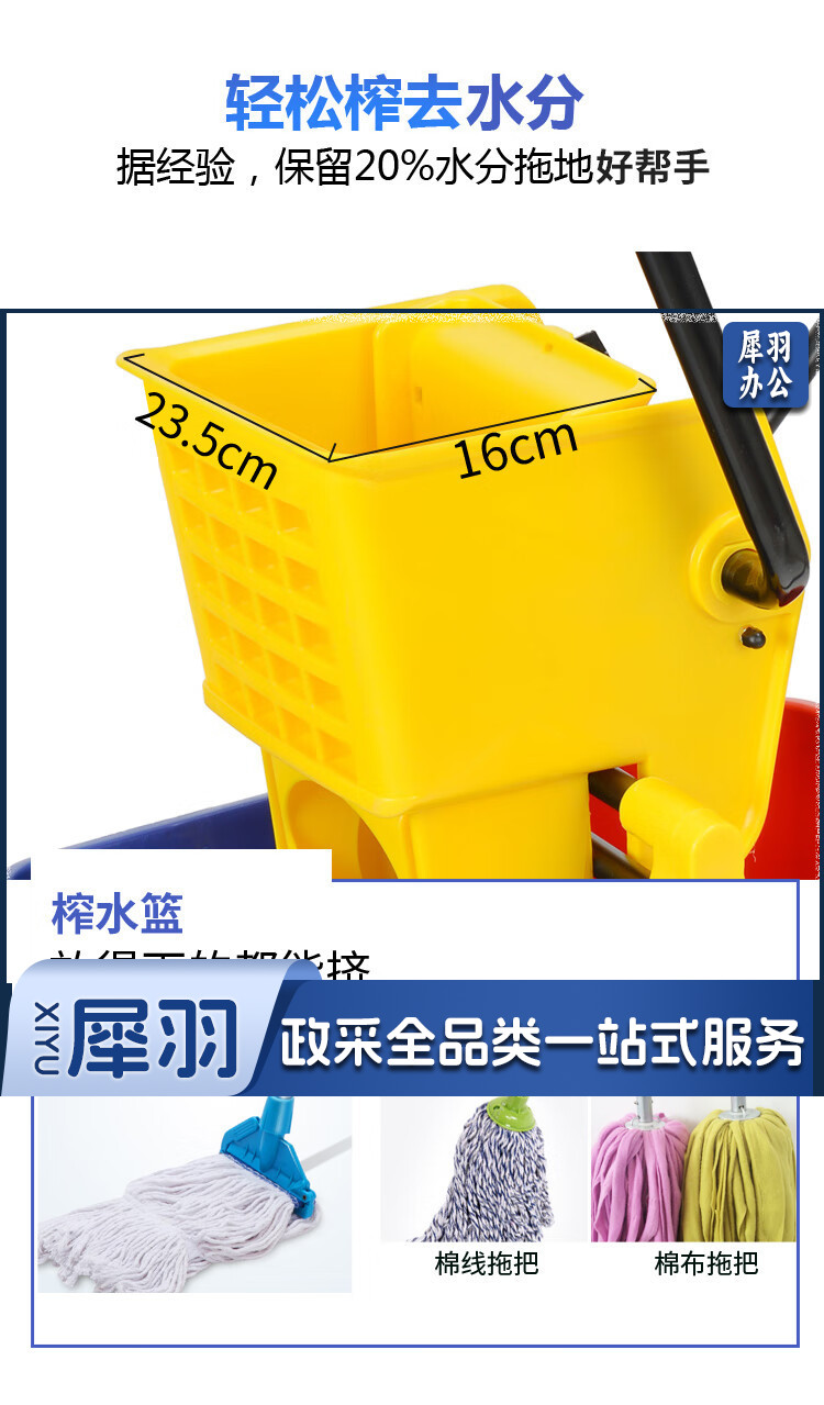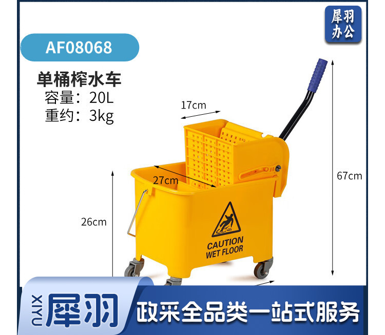 白云清洁 AF08071 不锈钢榨水车挤水桶酒店学院医院拖把桶墩布拖地桶清洁柞水桶 60L