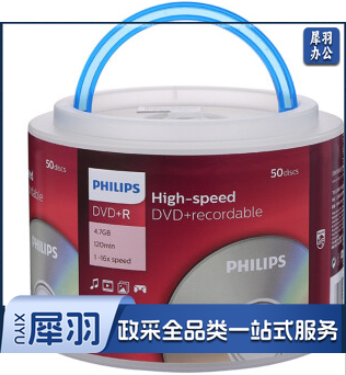 飞利浦(PHILIPS)DVD+R光盘/刻录盘 空白光盘 刻录光盘 光碟16速4.7G 手拎乖乖桶 桶装50片