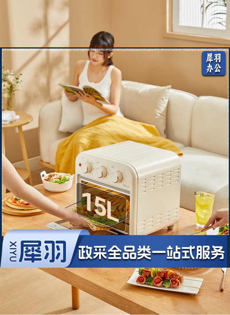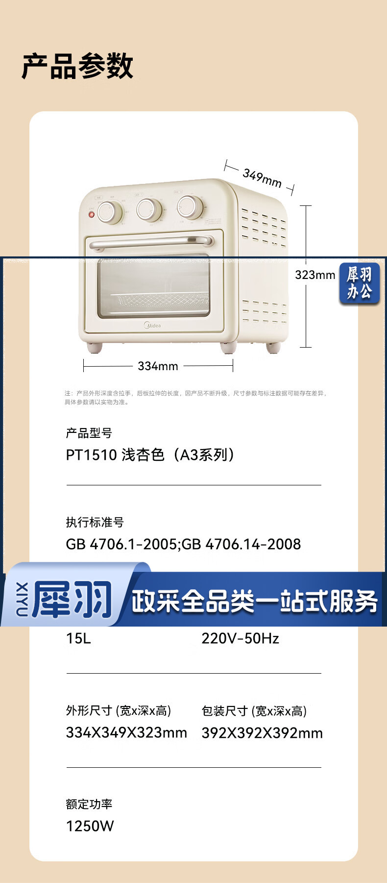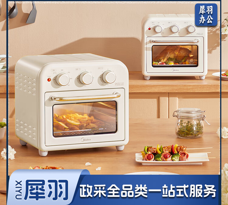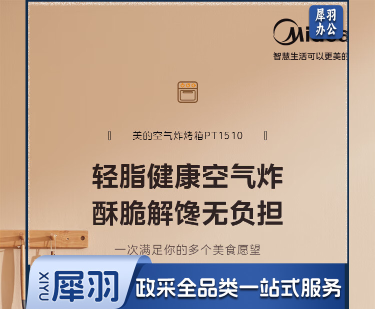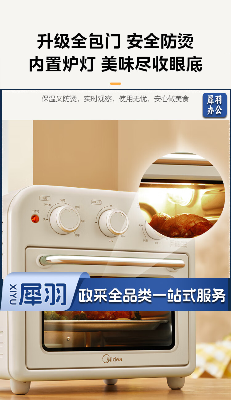 美的(Midea)家用多功能空气炸锅电烤箱一体机 高效脱脂/可视化/循环热风免翻面 15L浅杏色PT1510