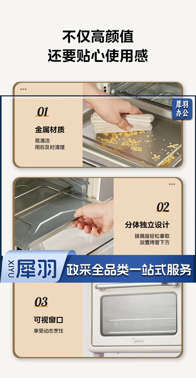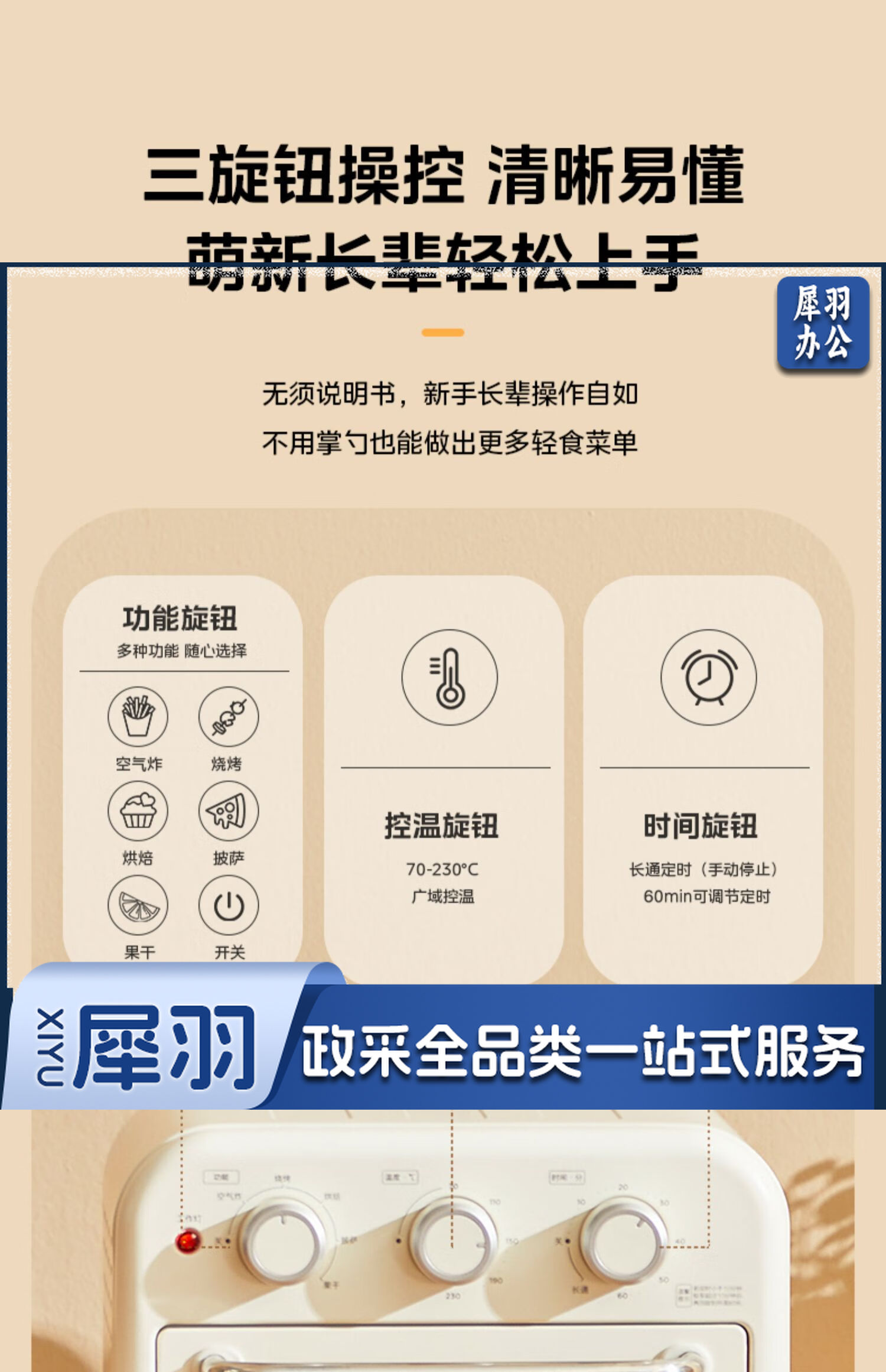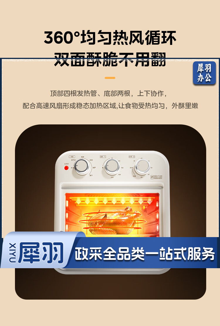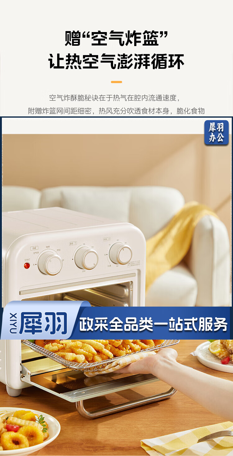 美的(Midea)家用多功能空气炸锅电烤箱一体机 高效脱脂/可视化/循环热风免翻面 15L浅杏色PT1510