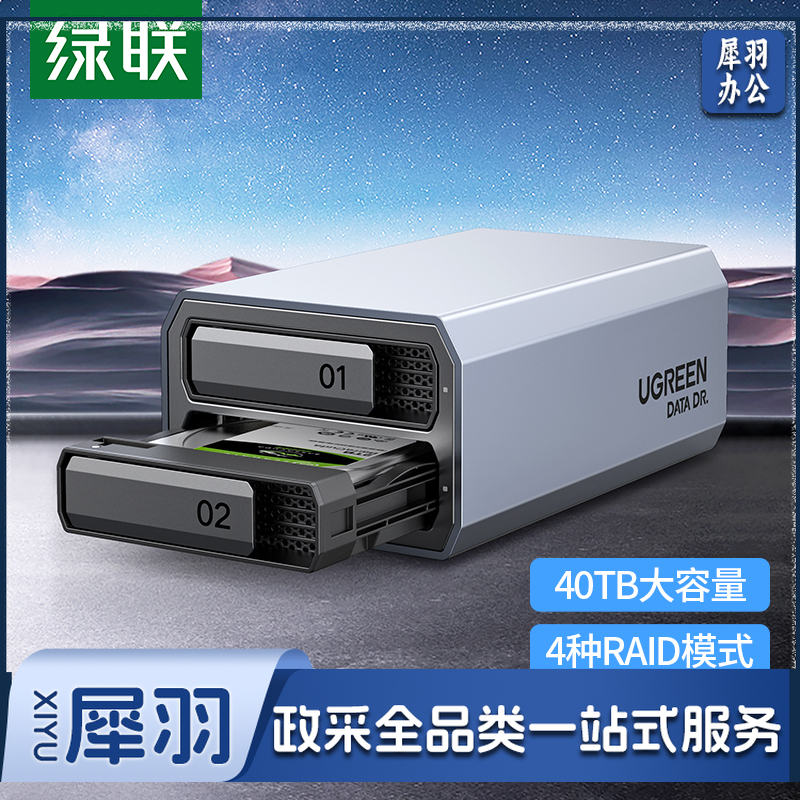 绿联CM461 磁盘阵列柜 硬盘盒 全铝双盘RAID 2.5/3.5英寸硬盘柜30786 SATA串口Type-C3.1 存储柜 固态机械硬盘通用
