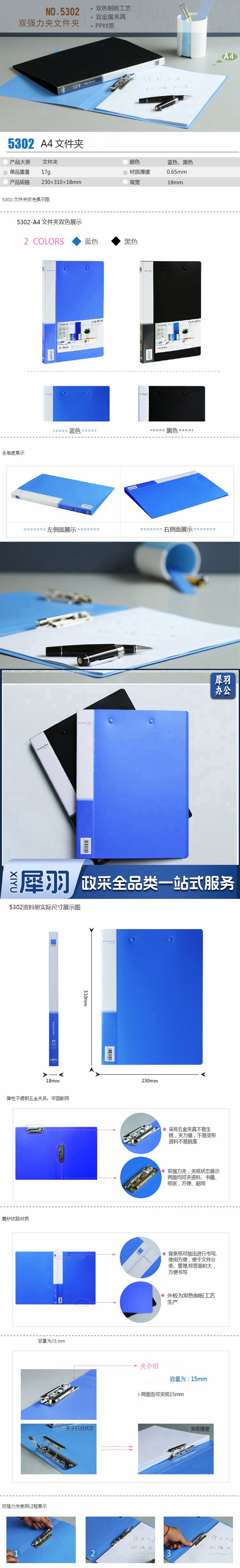 1100009976EA 得力 5302 双强力夹 A 4 蓝色