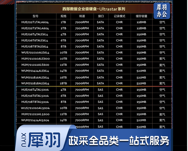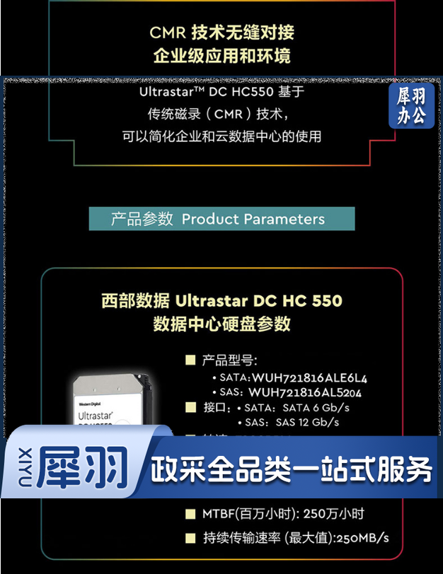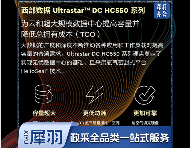 西部数据(Western Digital) WUH721816ALE6L4 16TB 企业级硬盘 HC550 SATA6Gb/s 7200转512M 氦气密封