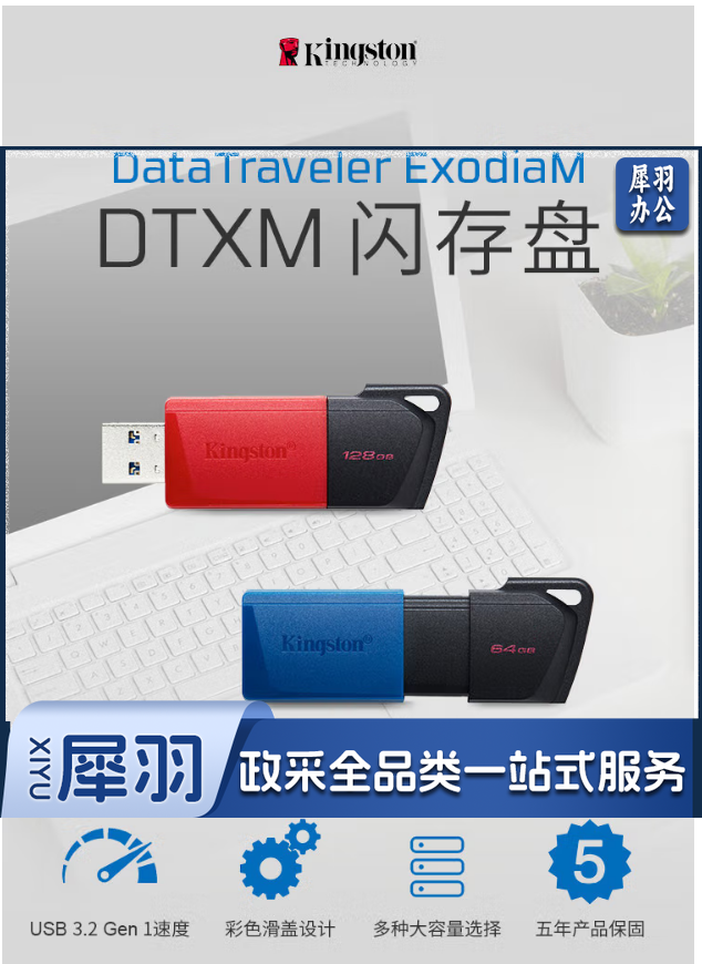 金士顿(Kingston)64GB USB3.2 Gen 1 U盘 DTXM 滑盖设计 多彩时尚