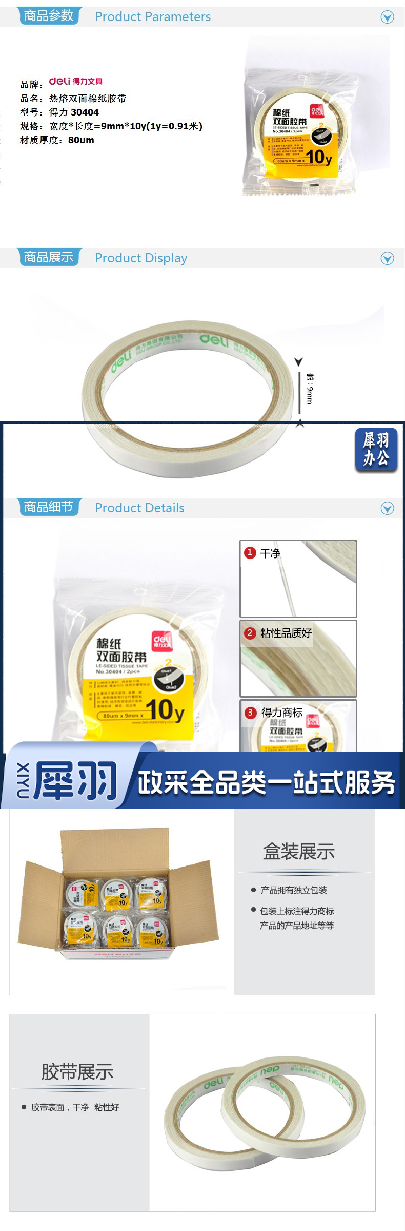 得力/deli 30404 棉纸双面胶带(单位:卷)