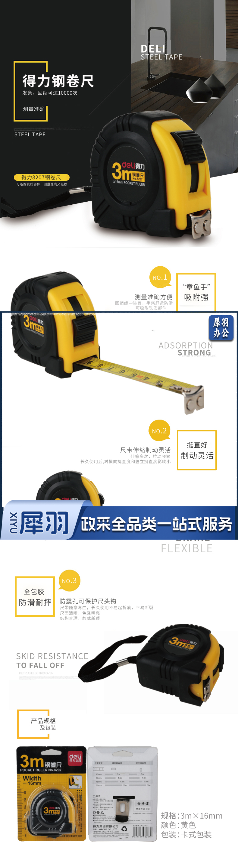 得力/deli 8207 钢卷尺(单位:把) 黄