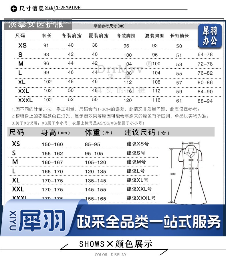 皖尧 护士服长袖女款夏装短袖白大褂夏季美容院师工作制服套装大码
