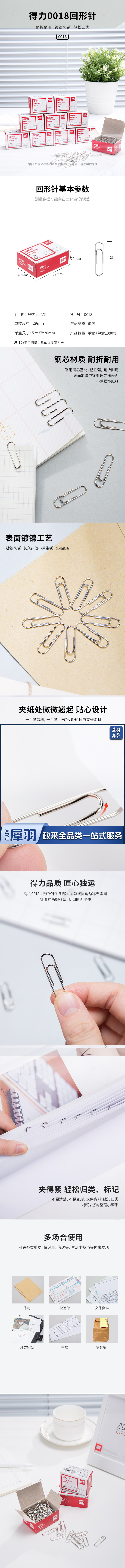 得力 0018 回形针 单位:盒