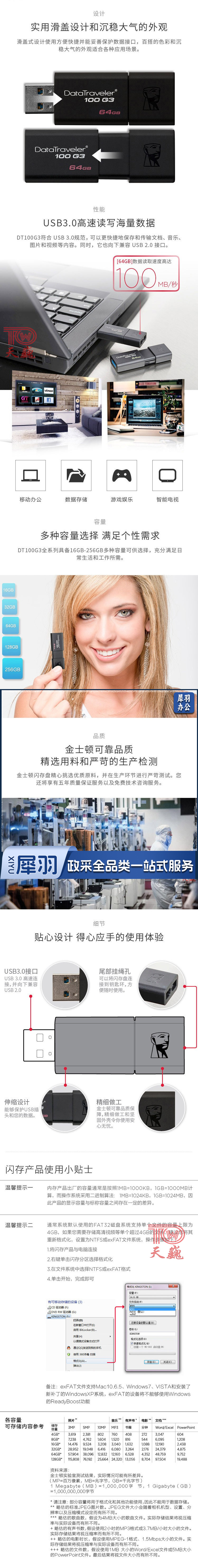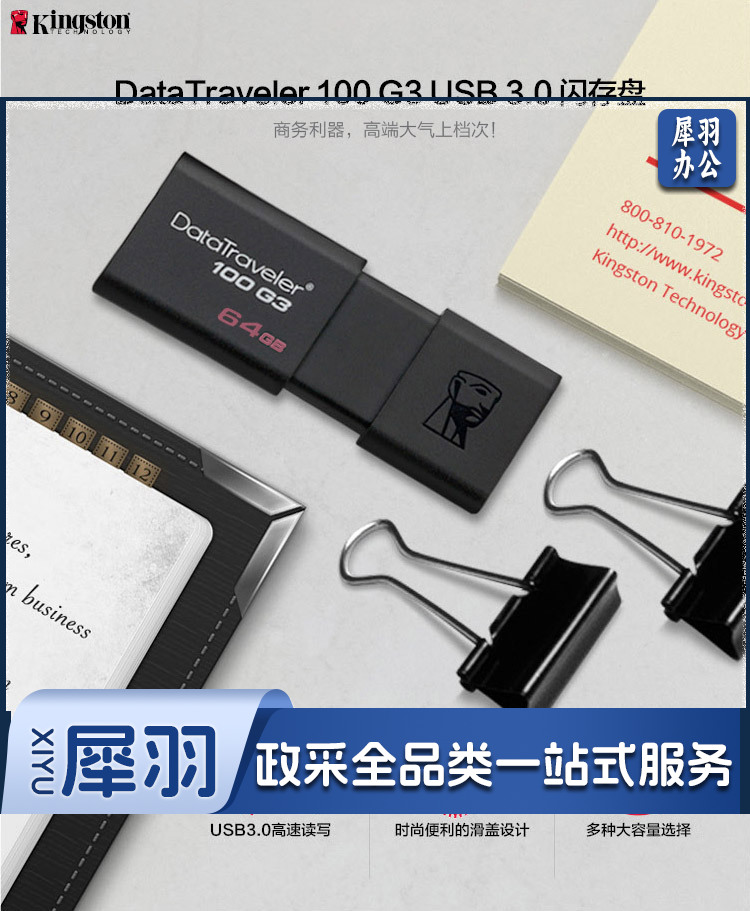 金士顿(Kingston)64G DT100G3系统 USB3.0 优盘 高速U盘