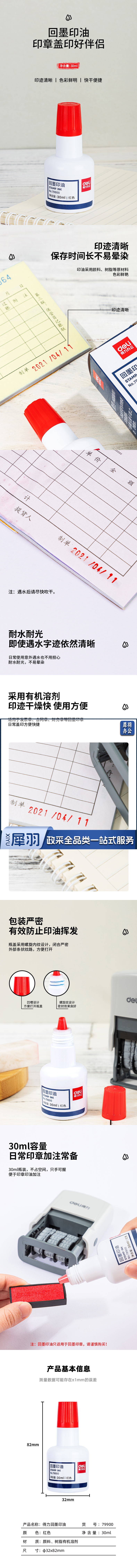 得力79900回墨印油30ml(红色)(单位:瓶)