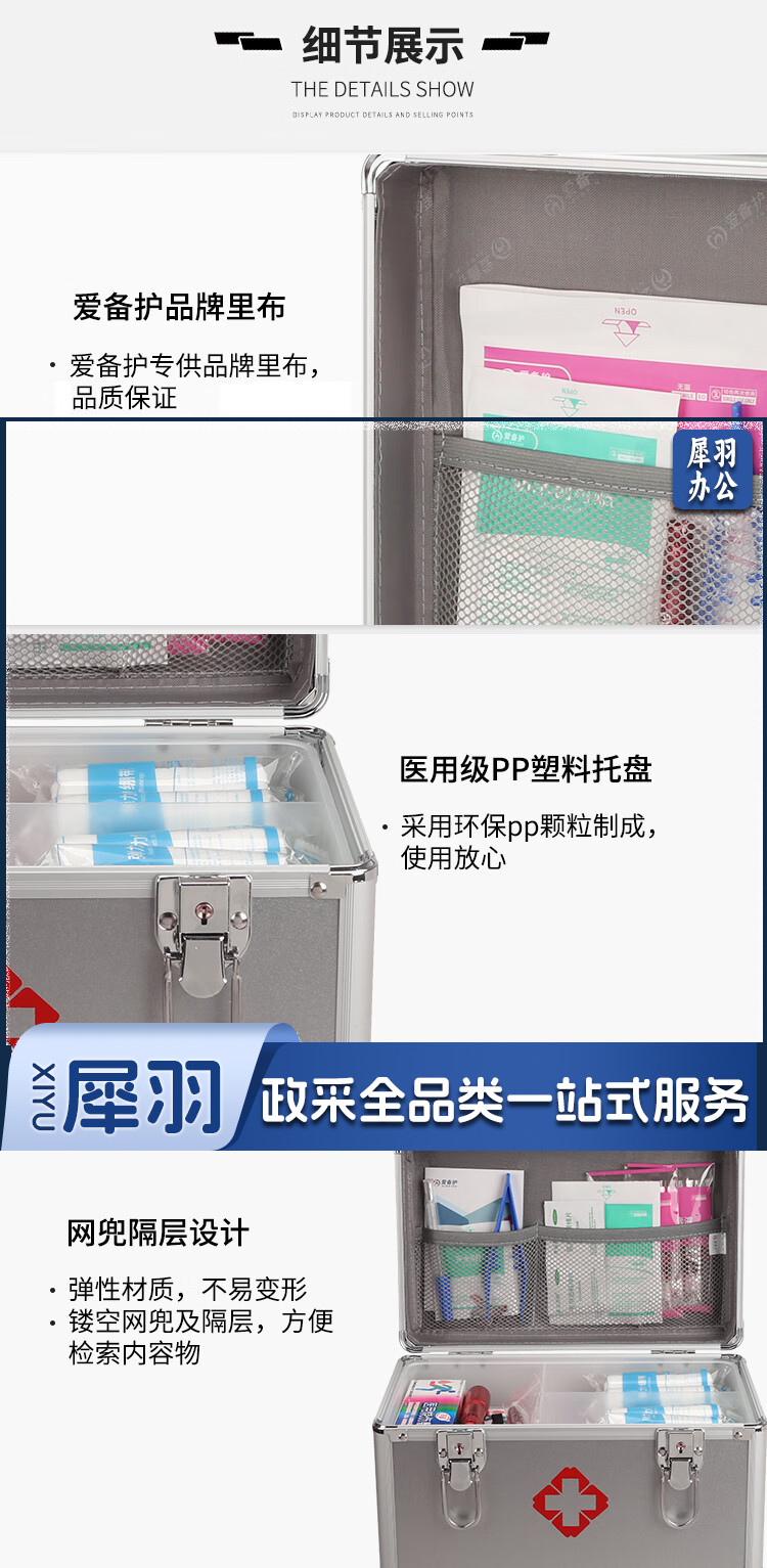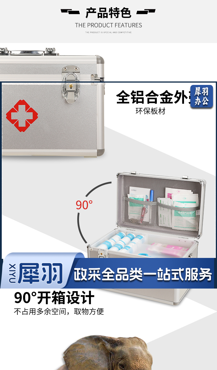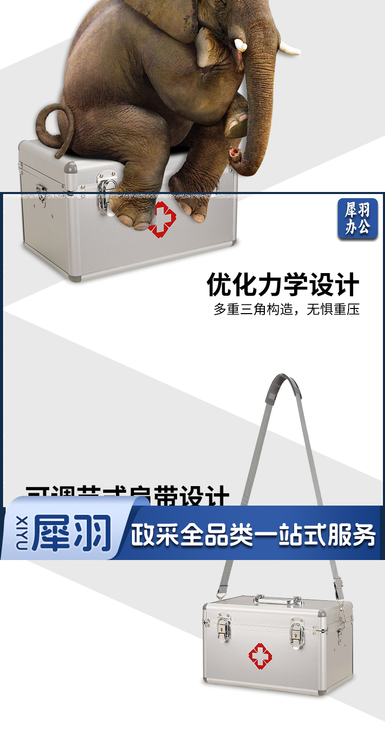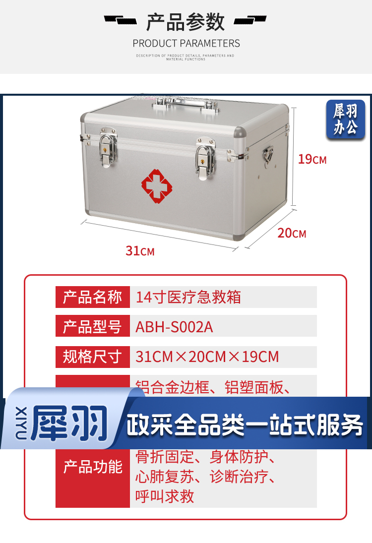 爱备护 银色14寸医疗急救箱急救包含药家用大容量应急家庭收纳医药箱*1个 ABH-S002A