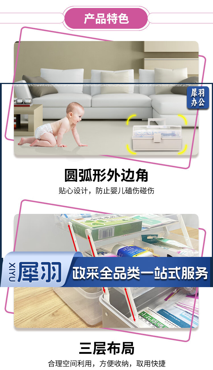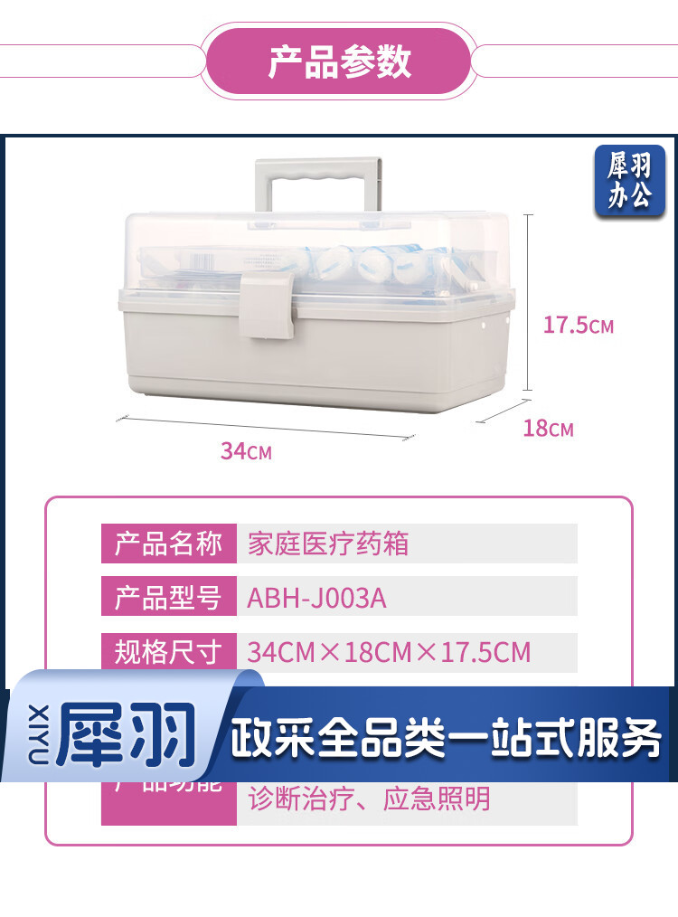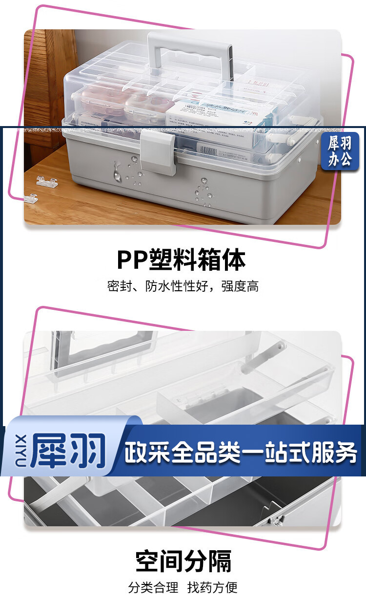 爱备护 医药箱家用塑料药箱便携式药盒手提多层药箱ABH-J003A 1套