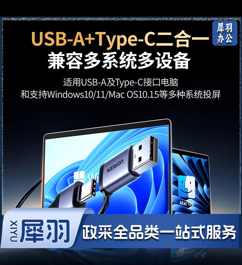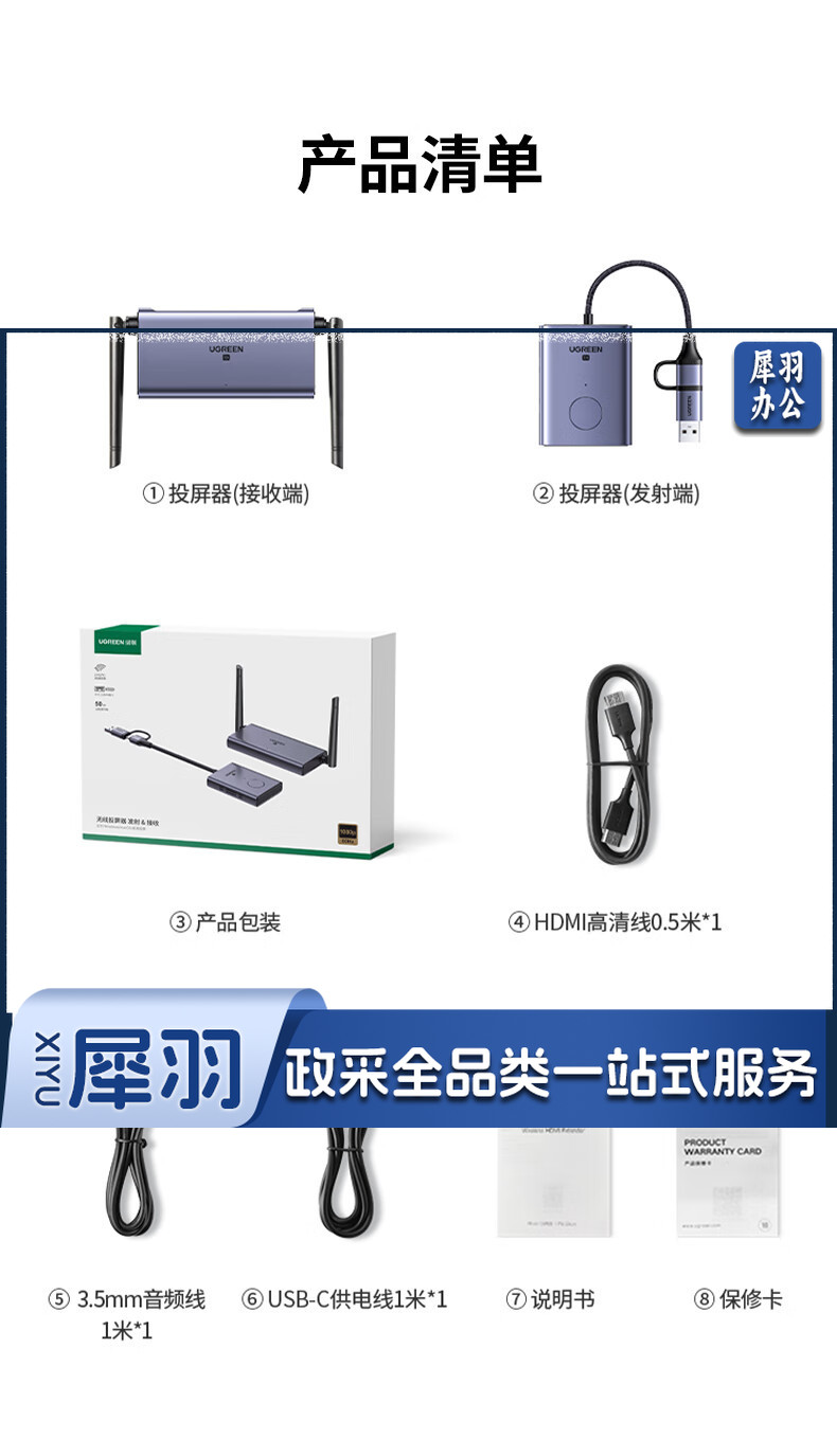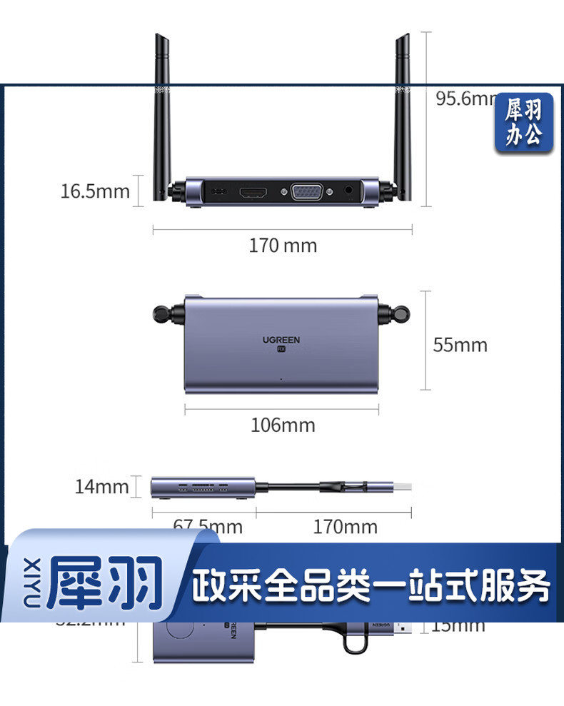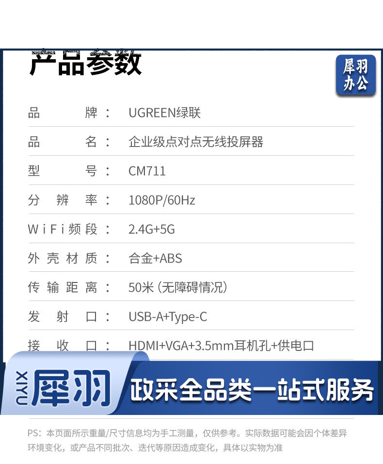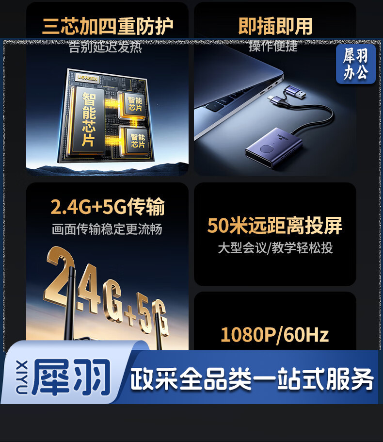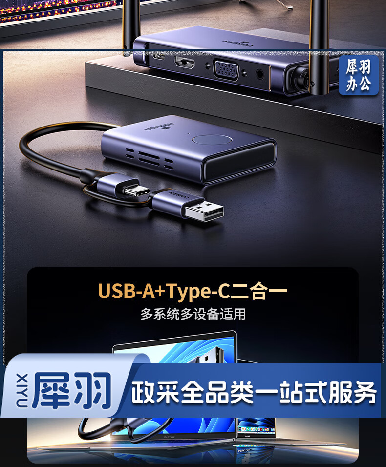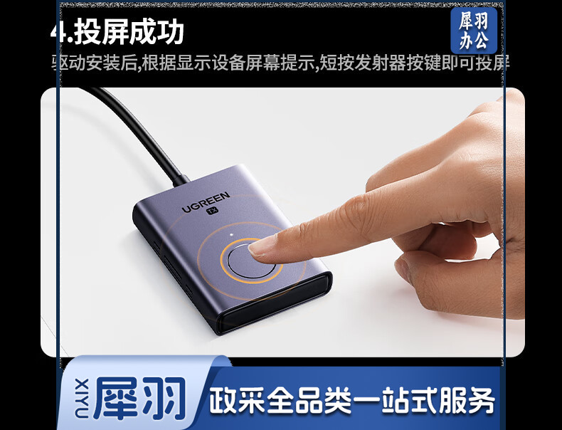 绿联(UGREEN)HDMI无线投屏器 USB同屏器高清办公会议 适用笔记本台式电脑连接显示器投影仪50米传输器25374