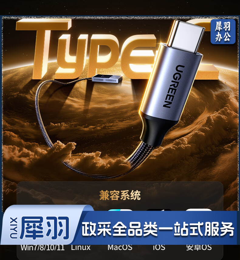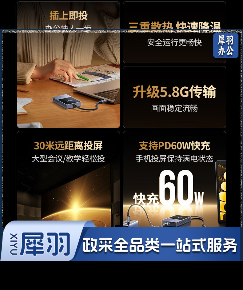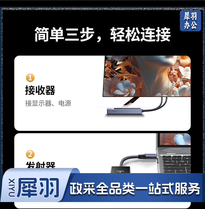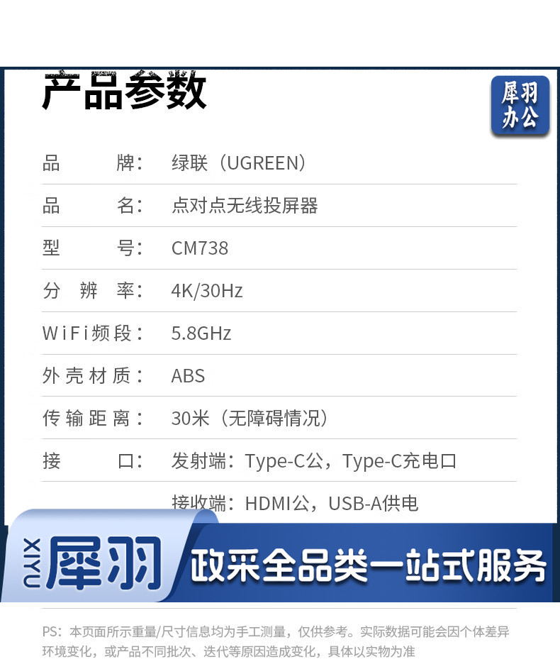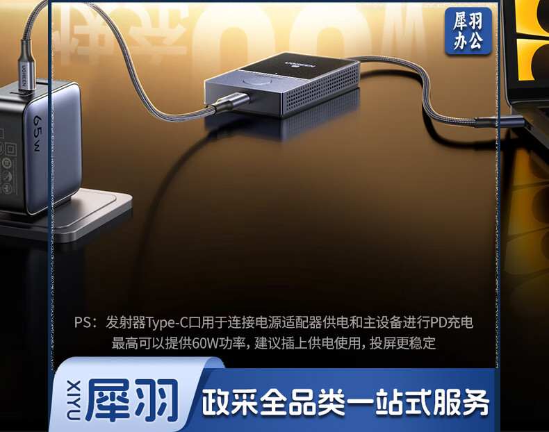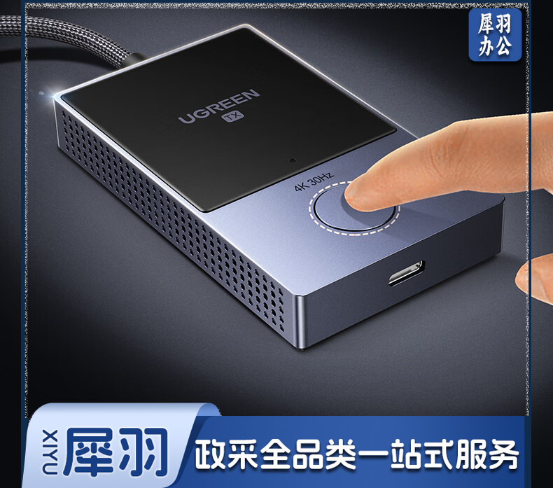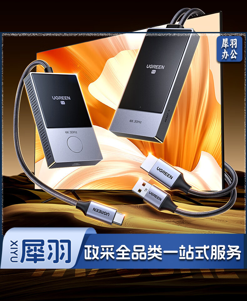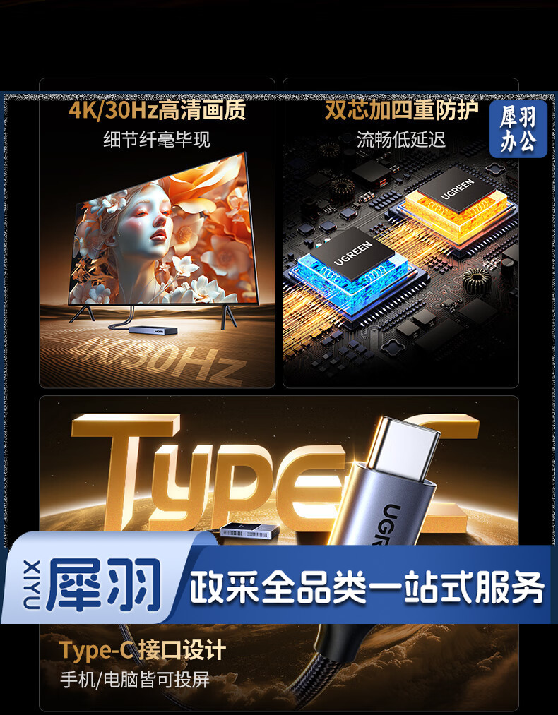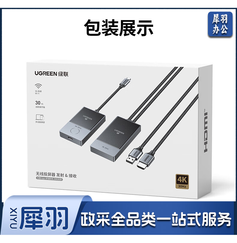 绿联(UGREEN)Type-C无线投屏器 HDMI4K企业会议同屏器适用手机显示器投影仪30米传输器35032