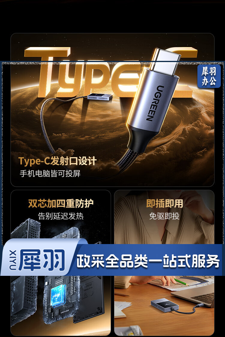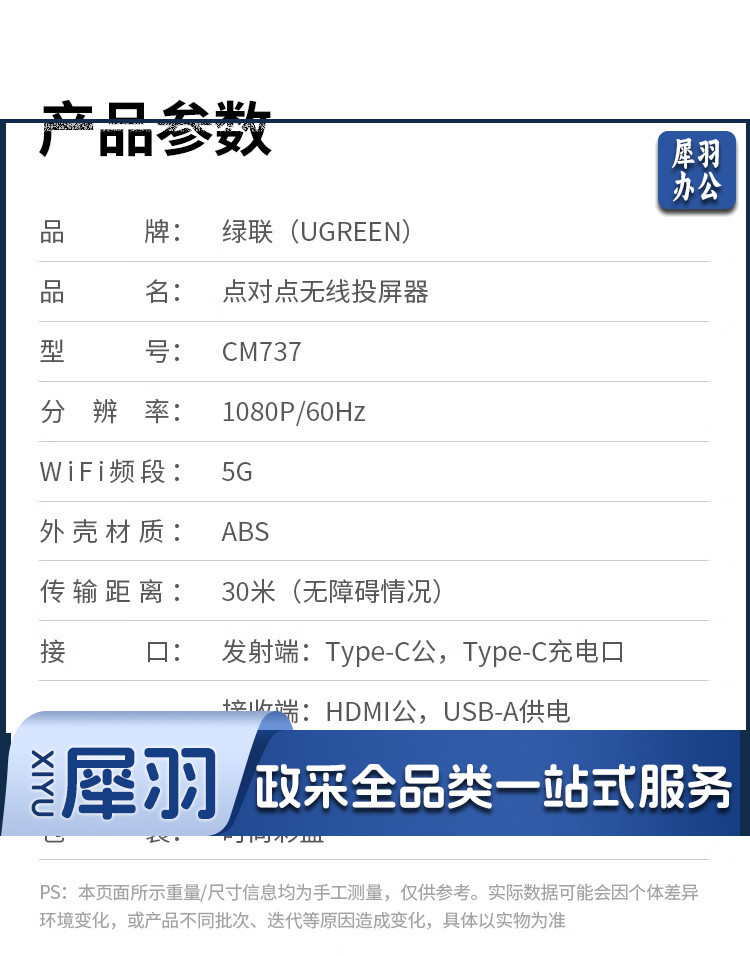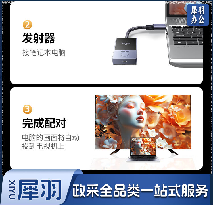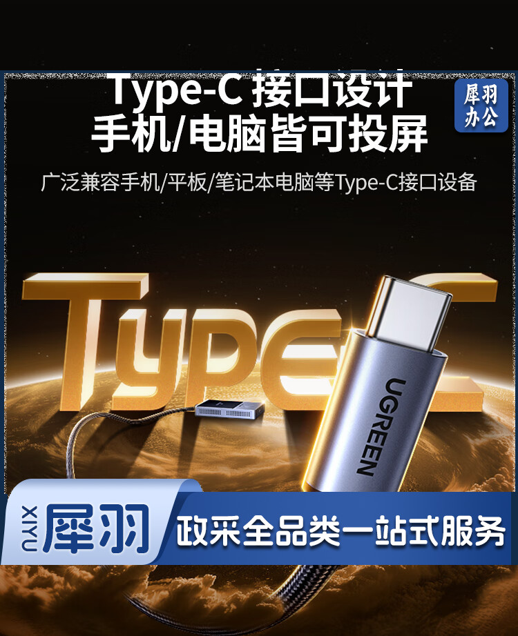 绿联(UGREEN)Type-C无线投屏器 HDMI高清企业会议同屏器 适用手机连投影仪30米传输器35031