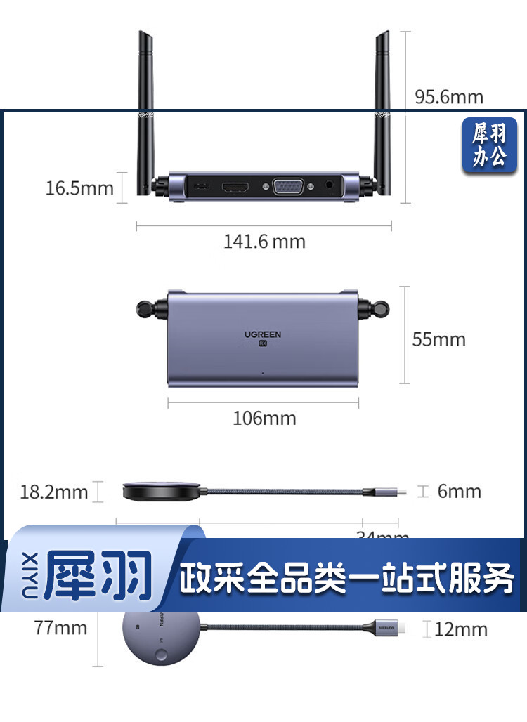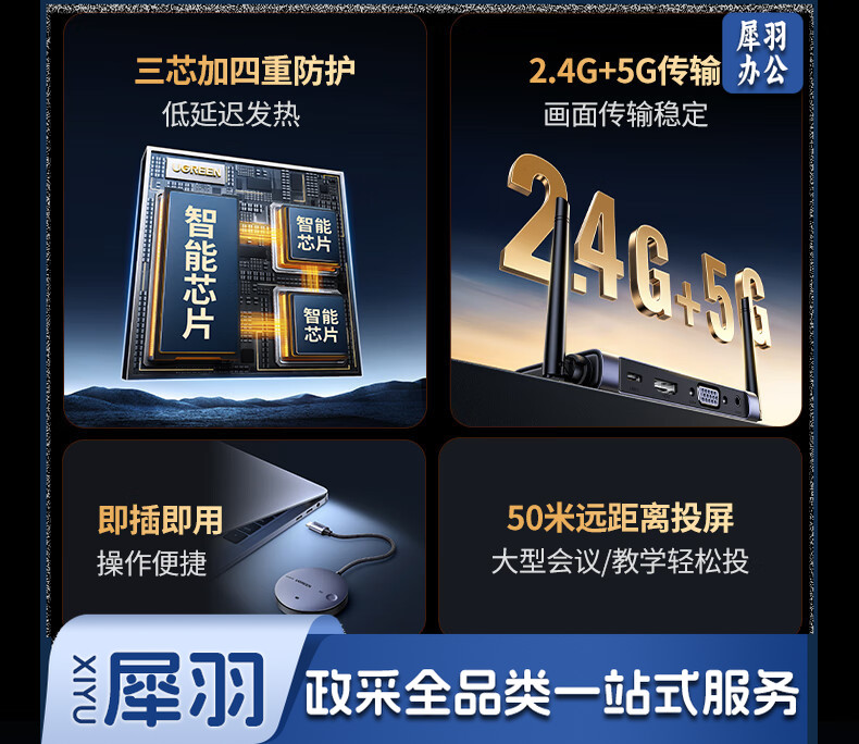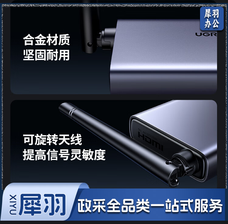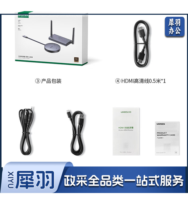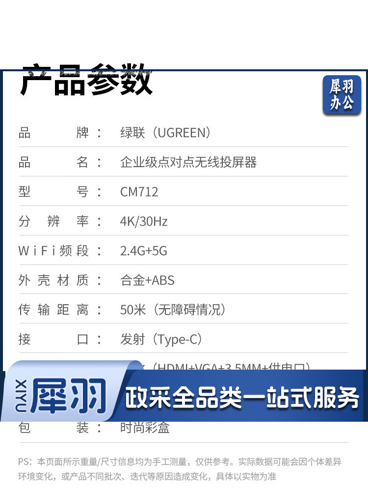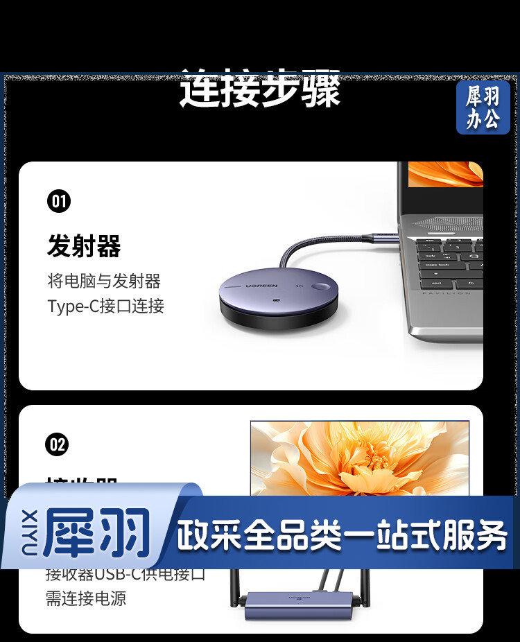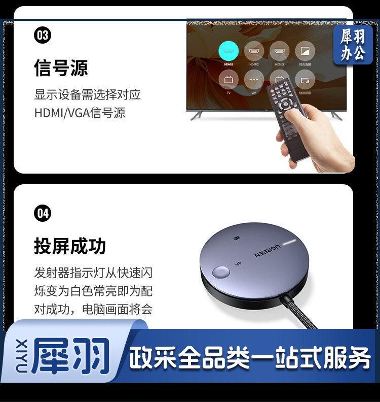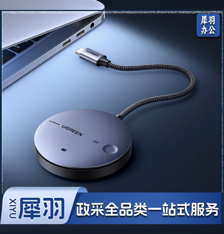 绿联(UGREEN)Type-C无线投屏器 HDMI4K企业会议同屏器 适用手机连显示器投影仪50米传输器25375