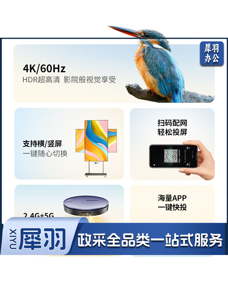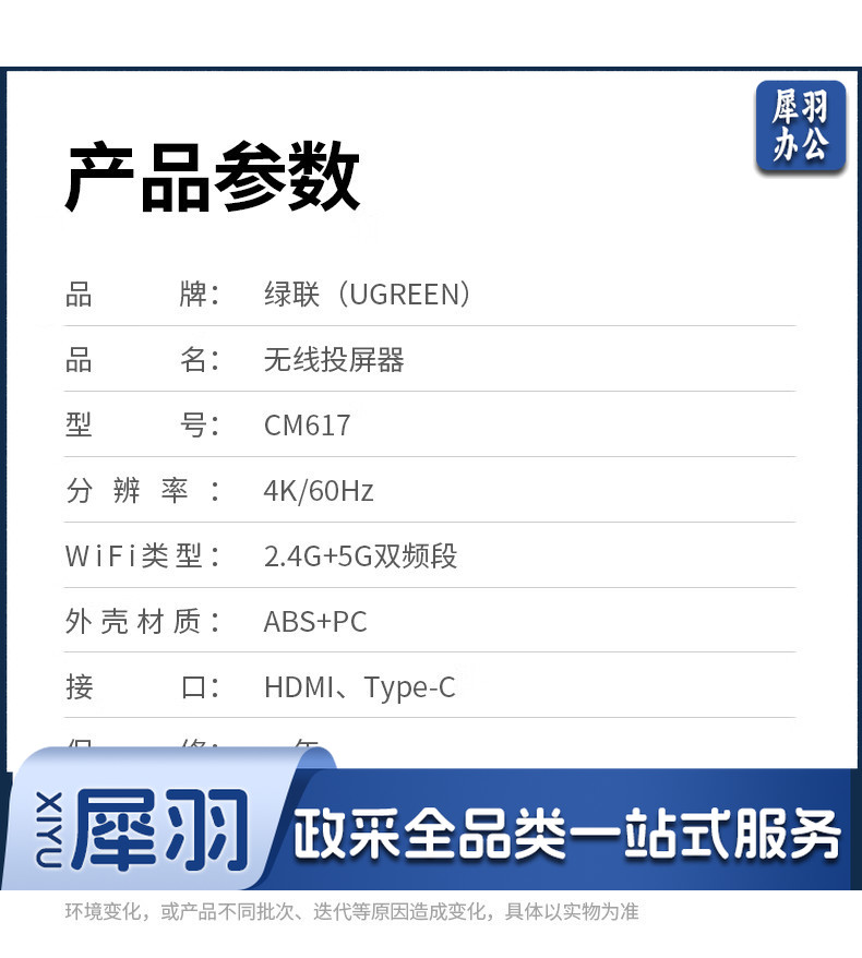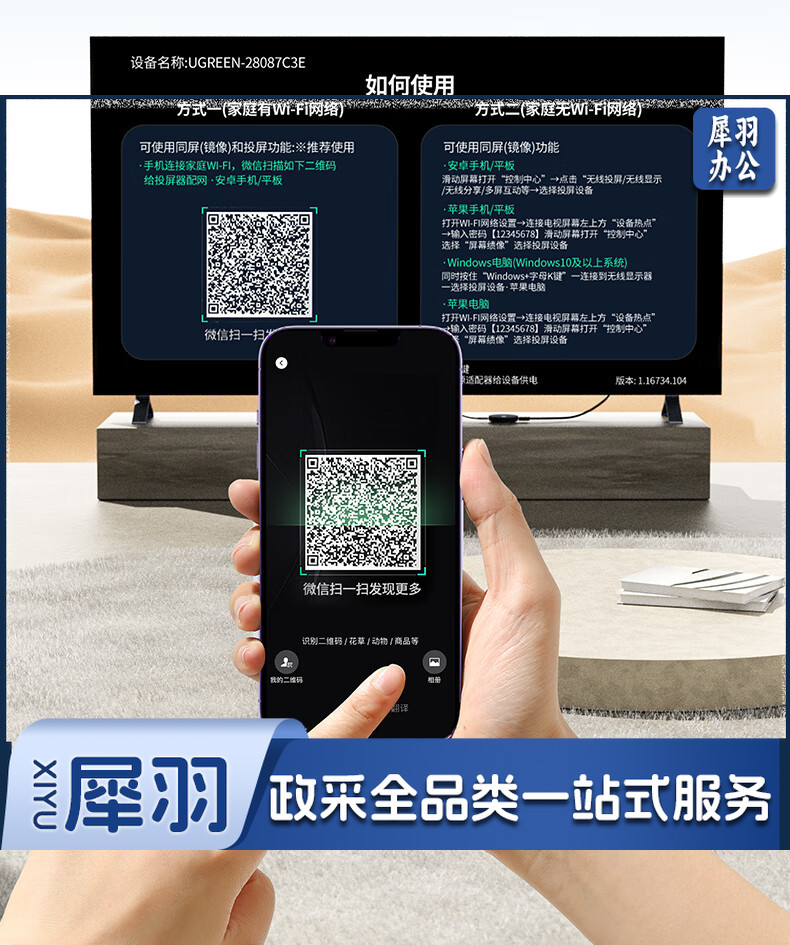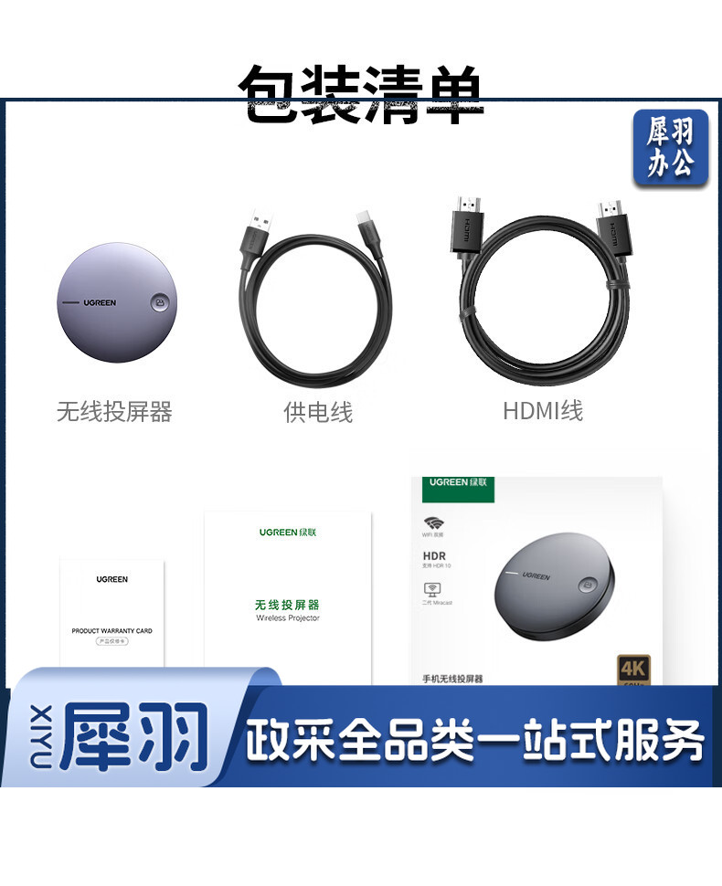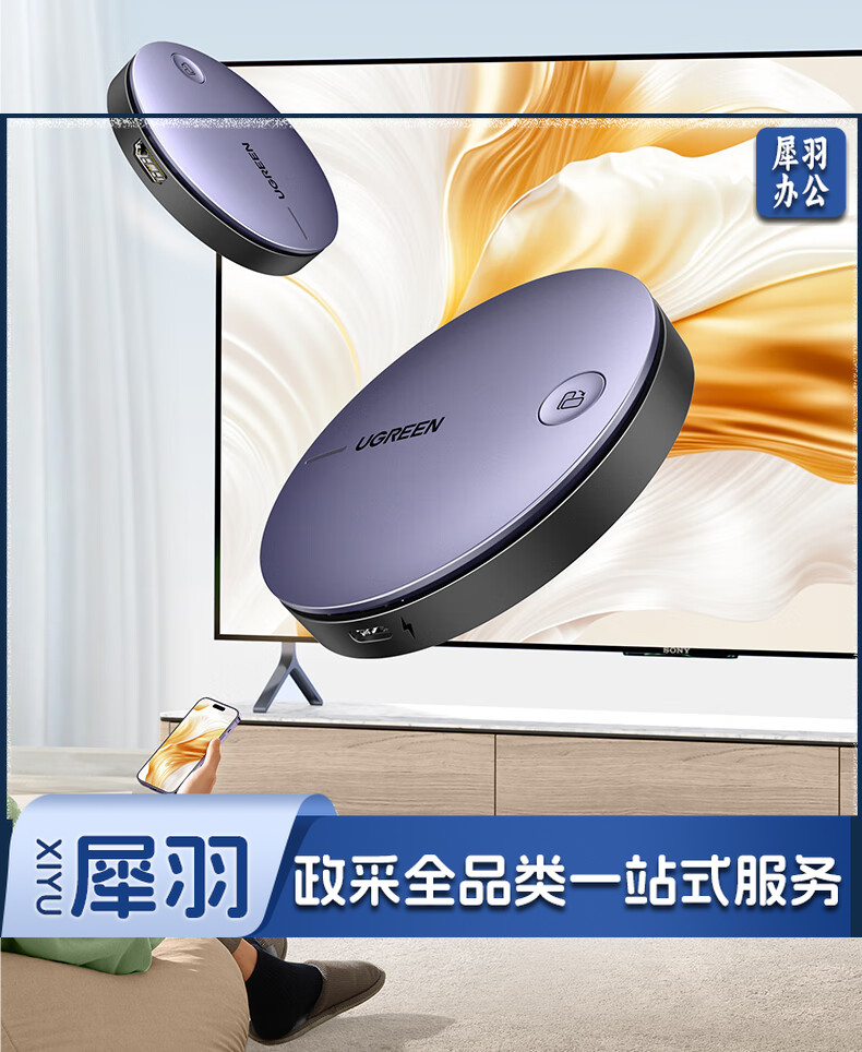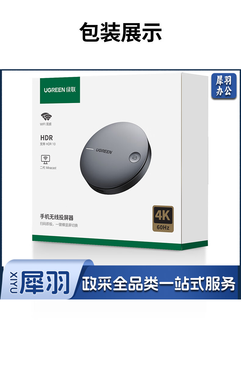 绿联(UGREEN)手机无线投屏器 HDMI音视频同屏传输器 4K60Hz高清连接器适用苹果安卓手机电脑接显示器投影仪