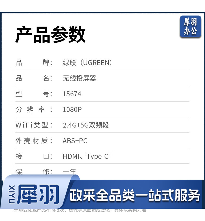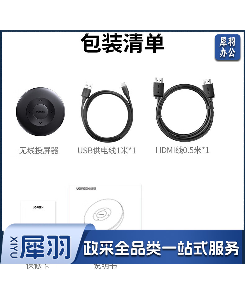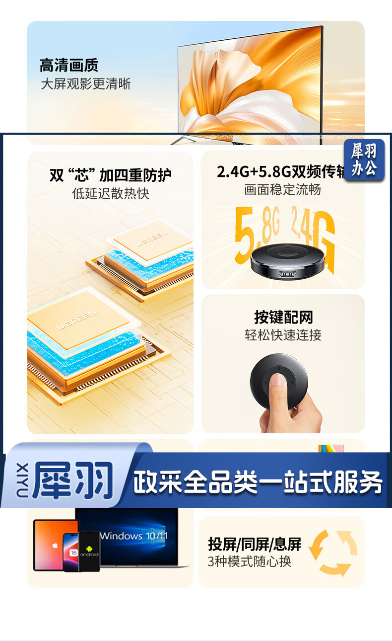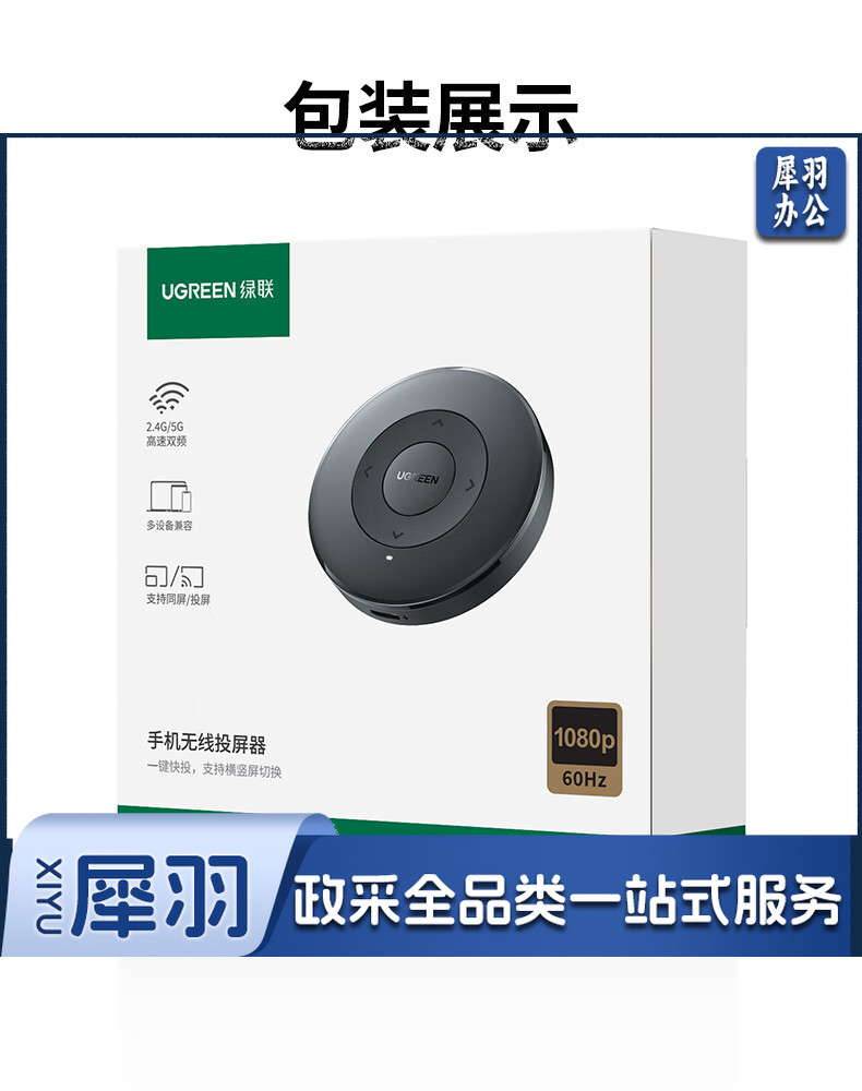绿联(UGREEN)手机无线投屏 HDMI音视频同屏传输器高清连接器适用苹果安卓华为手机电脑接显示器投影仪15674
