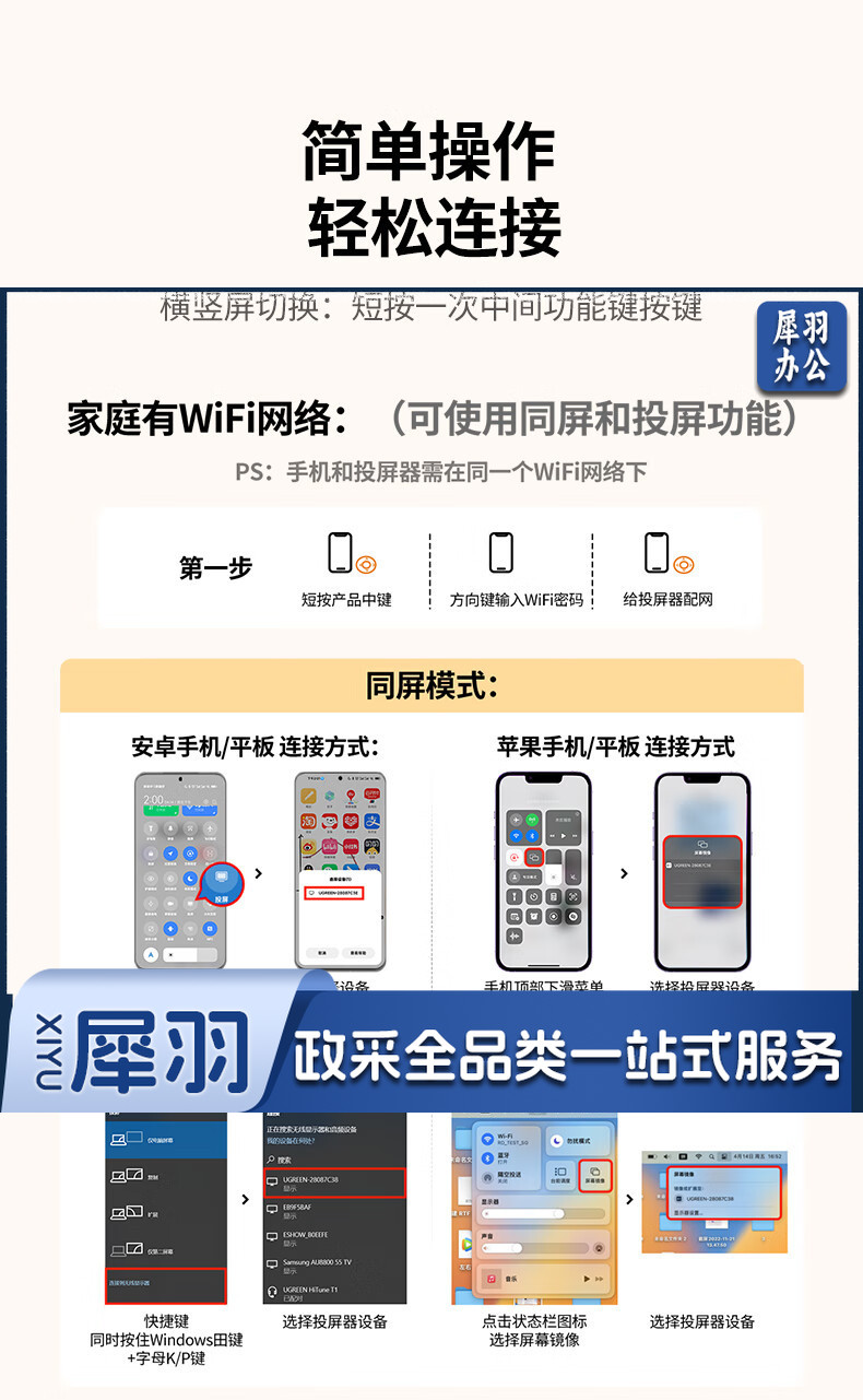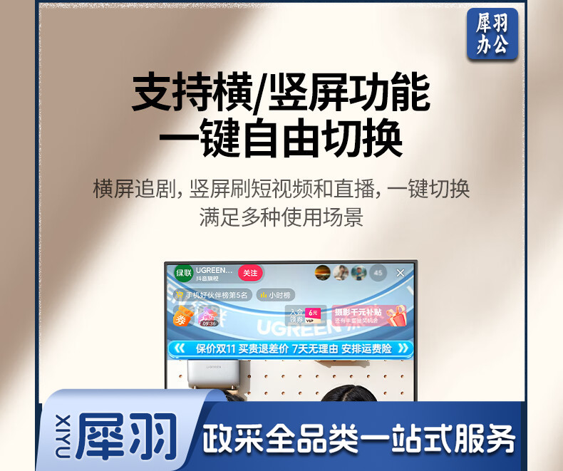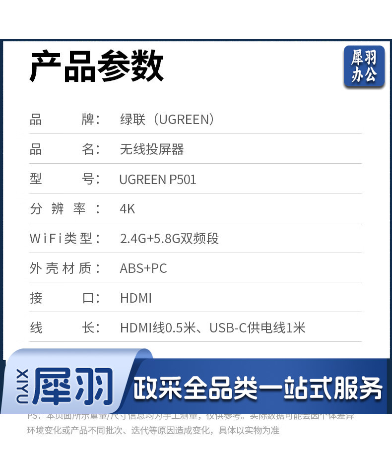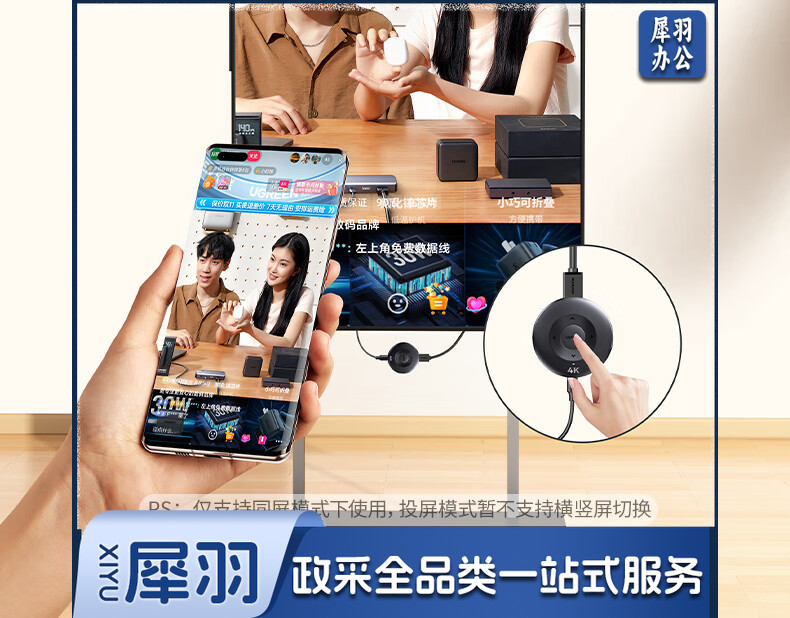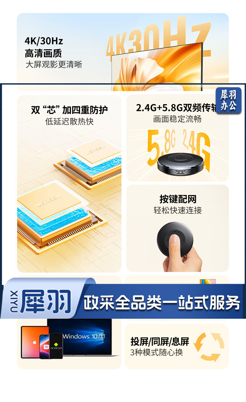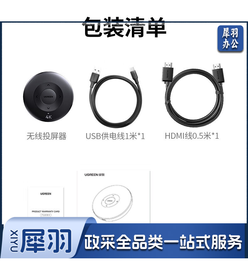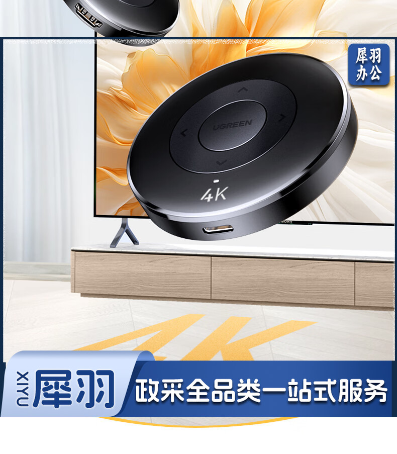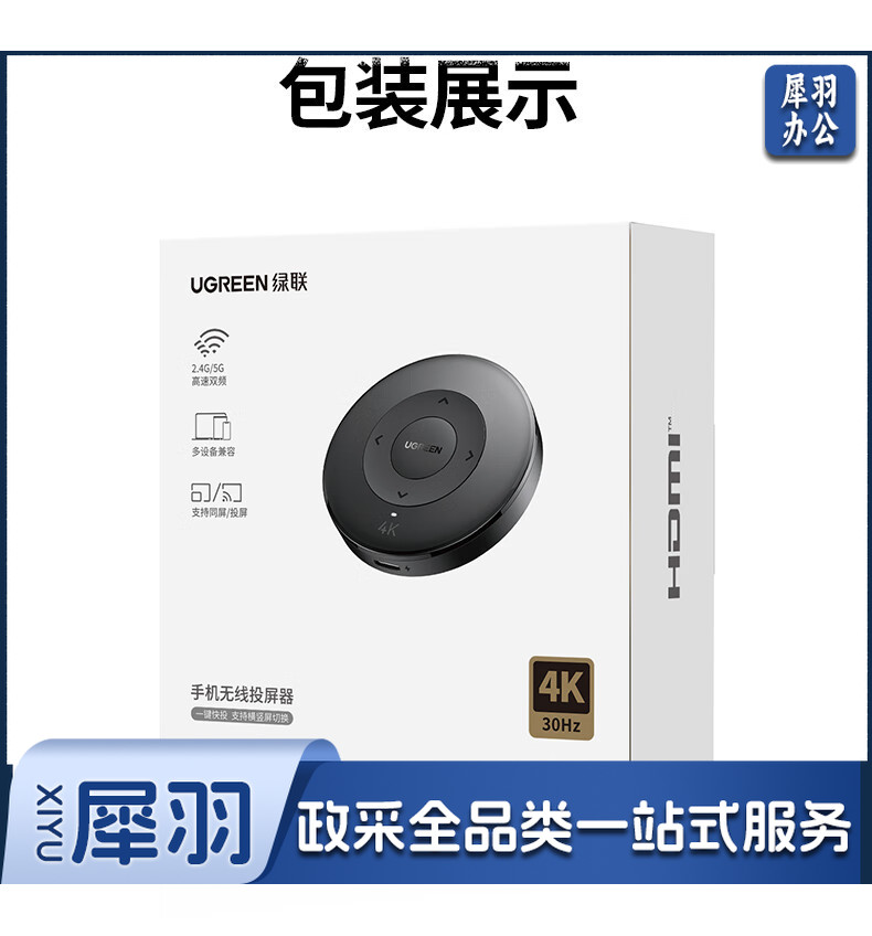 绿联(UGREEN)手机无线投屏器 4K高清HDMI音视频同屏传输器 支持横竖屏适用苹果安卓手机电脑接显示器投影仪