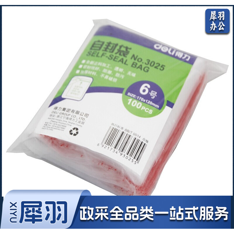 得力/deli 3025 透明自封袋 6号 170x120mm 0.04mm 100个/包(单位:包)