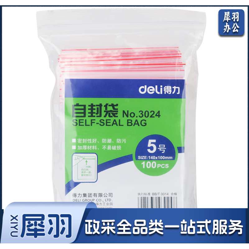 得力(deli)食品密封袋5号13*10cm 加厚防水PE透明收纳防尘 100只透明 3024 WLSZ0801111701484