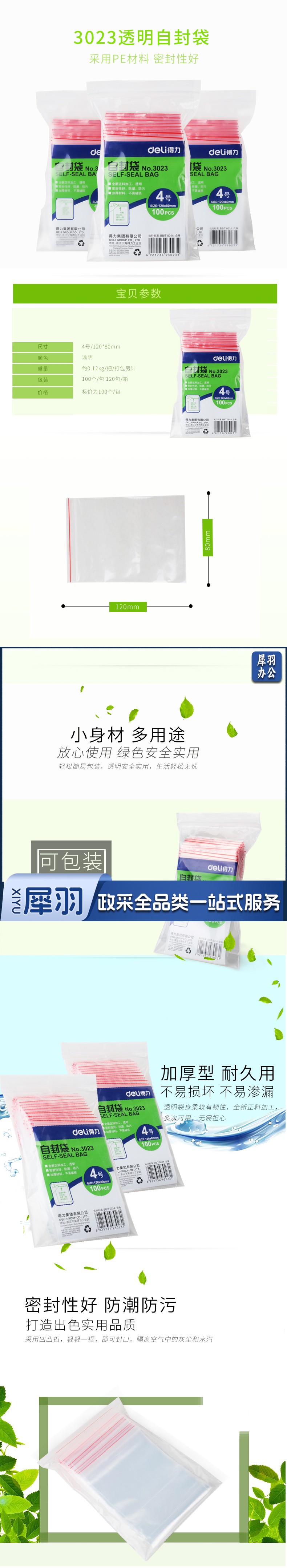 得力/deli 3023 透明自封袋 4号 100个/包(单位:包)