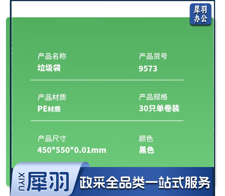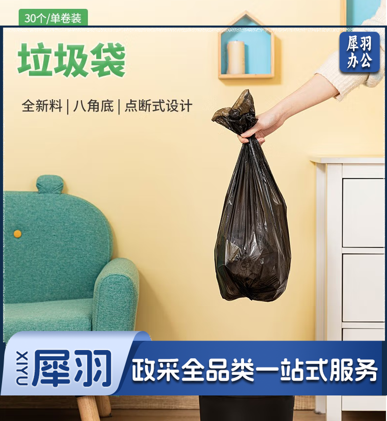 得力9574垃圾袋(黑)50*60cm(30个/卷)八角底