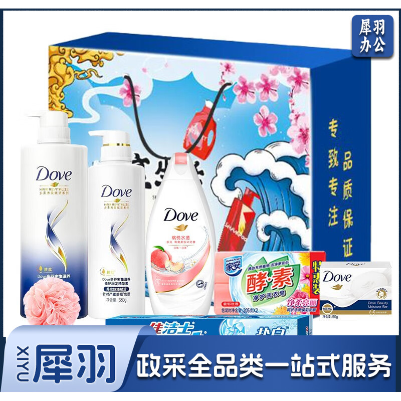多芬多芬洗发水护发素组合400g+380g沐浴露牙膏刷洗衣皂礼盒9件装
