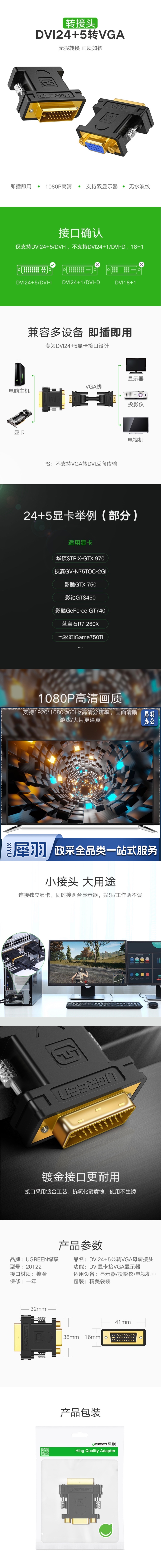 绿联(UGREEN)DVI公转VGA母转接头 DVI-I/DVI24+5高清转换器连接线 台式主机电脑显卡接显示器投影仪 20122