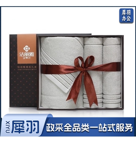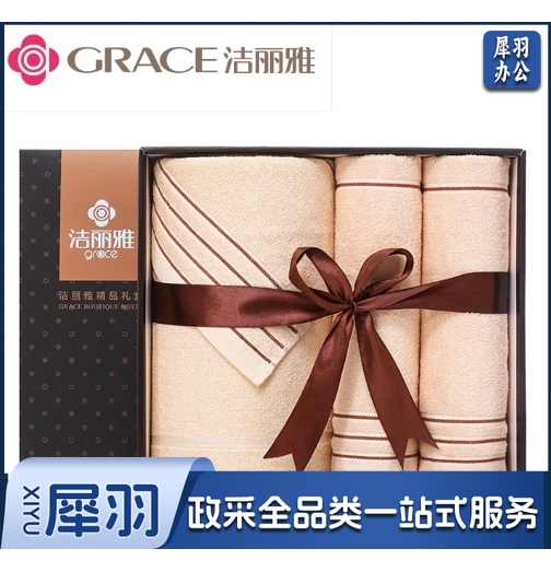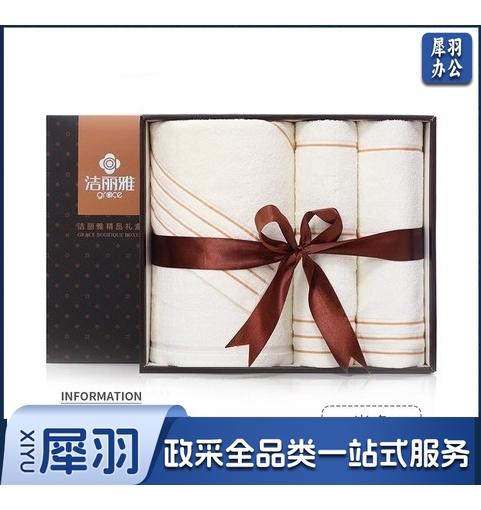 洁丽雅7378三件套礼盒 纯棉浴巾毛巾礼盒刺绣logo 洁丽雅浴巾礼盒