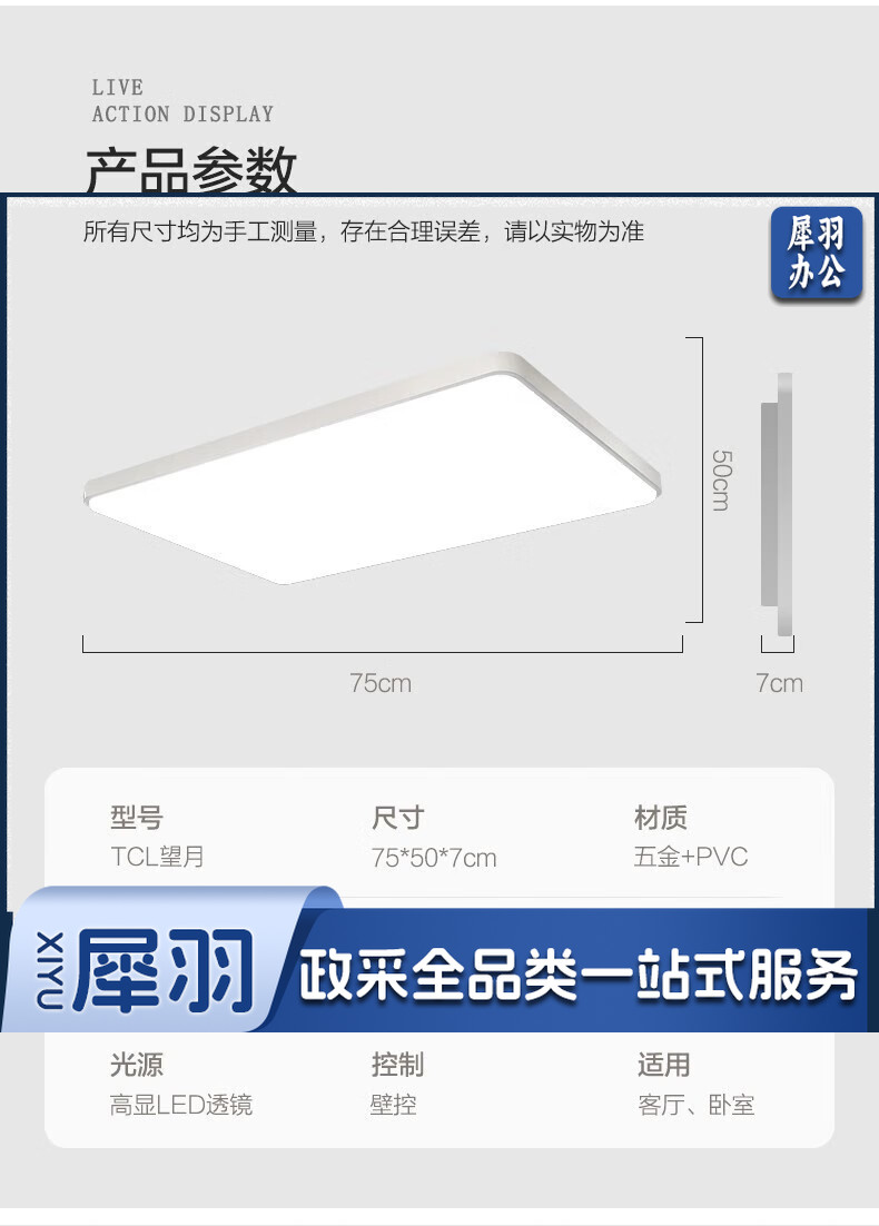 TCL照明客厅灯led吸顶灯简约客厅大灯餐厅卧室全屋三室两厅灯具套餐 特蕙96瓦三色80*50cm适20-25平