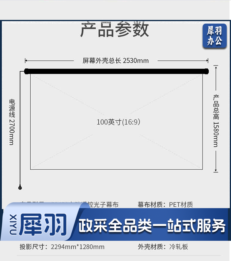 得力电动遥控投影幕 光子幕 50452 黑色 不含安装 (偏远区域下单前请电话咨询)