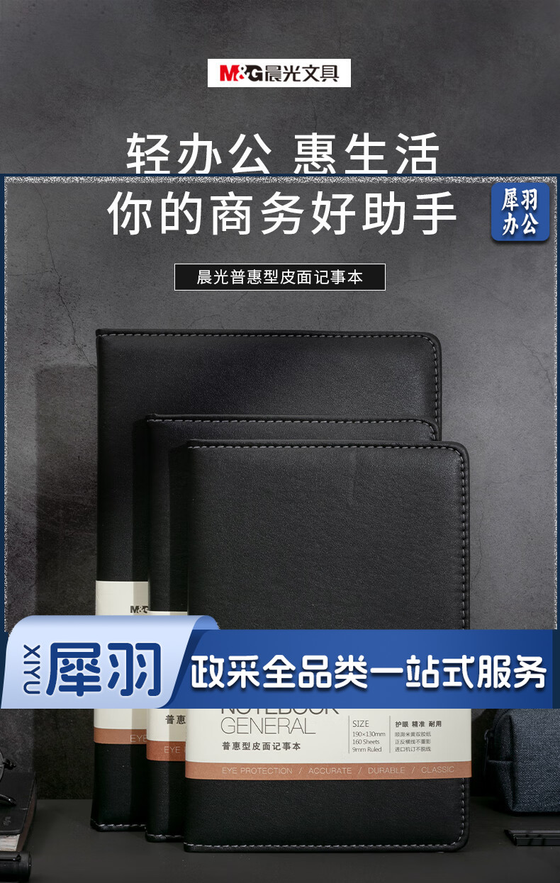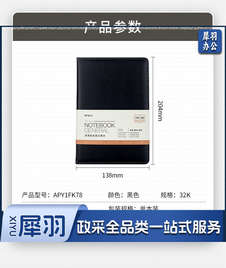 晨光(M&G)文具32K/160张黑色会议记录皮面本 办公笔记本 普惠型商务记事本子 单本装APY1FK78
