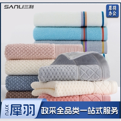 三利毛巾纯棉素色面巾蜂窝缎档大毛巾成人纯棉毛巾商超劳保