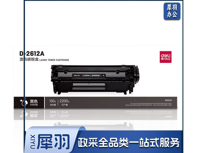 得力(deli) D-2612A激光碳粉盒(黑)(适用惠普 Laserjet 1010/1012/1015/1018/1020/1022/M1005mfp)(五金松鹭)