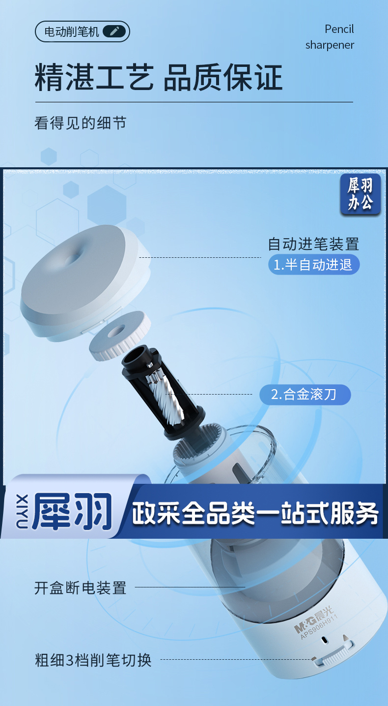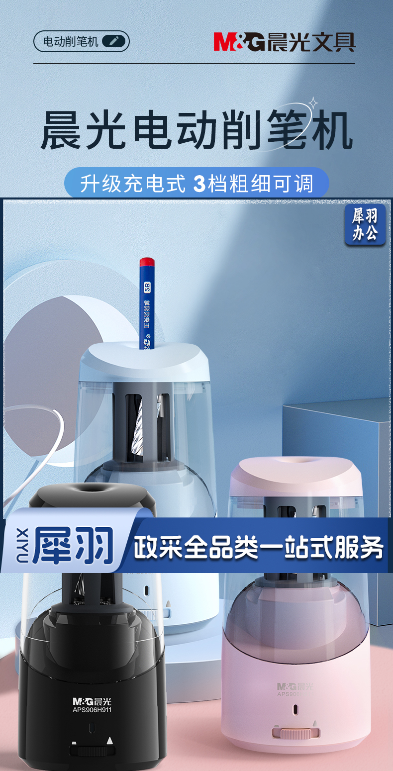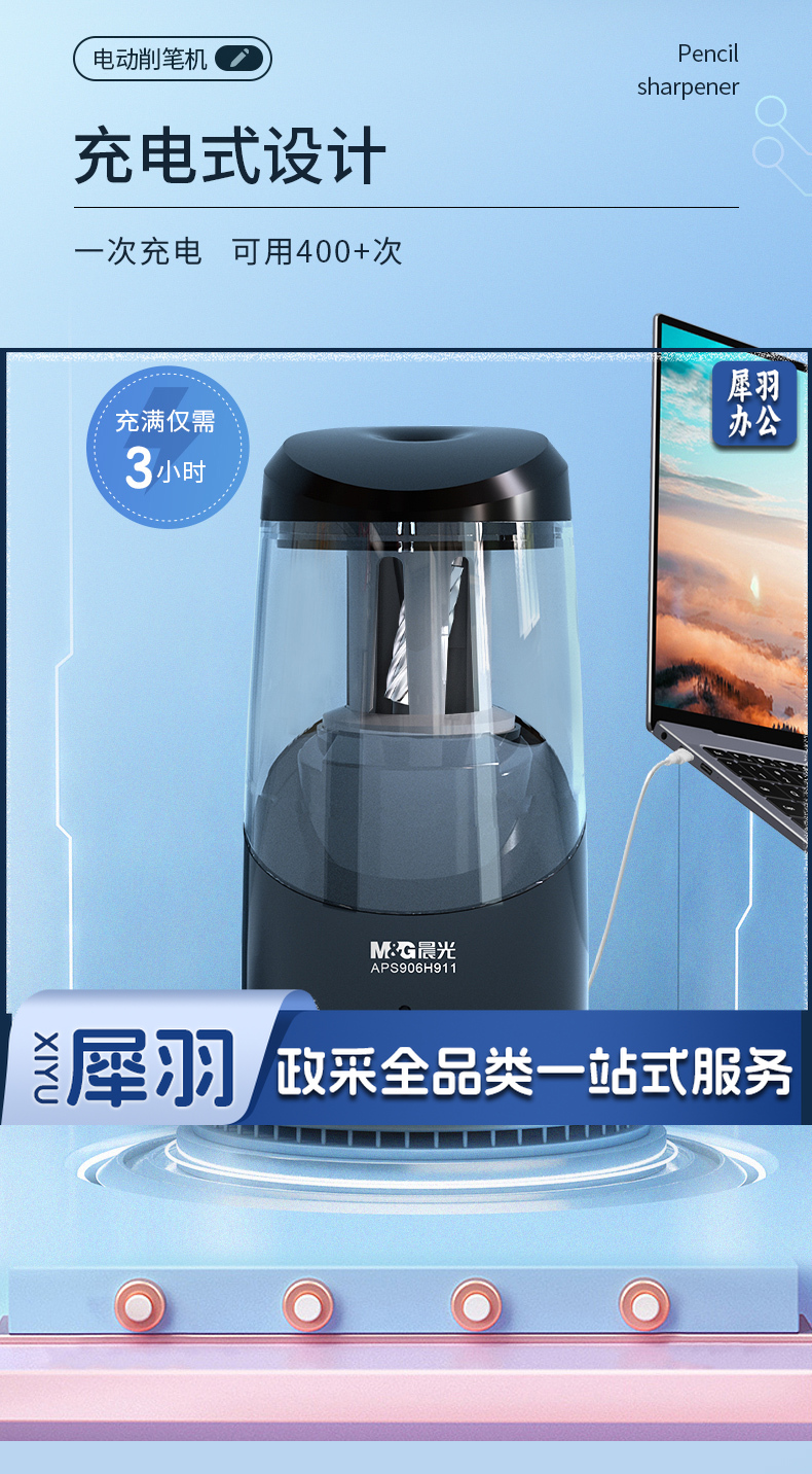 晨光(M&G)文具电动削笔器 半自动卷笔刀 三档粗细削笔机转笔刀 可充电锂电池 APS906H9A