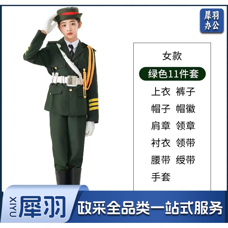 中小学国旗班升旗手 仪仗队服装学生升旗仪式护卫队礼服(绿色11件套)(尺寸:110-190)