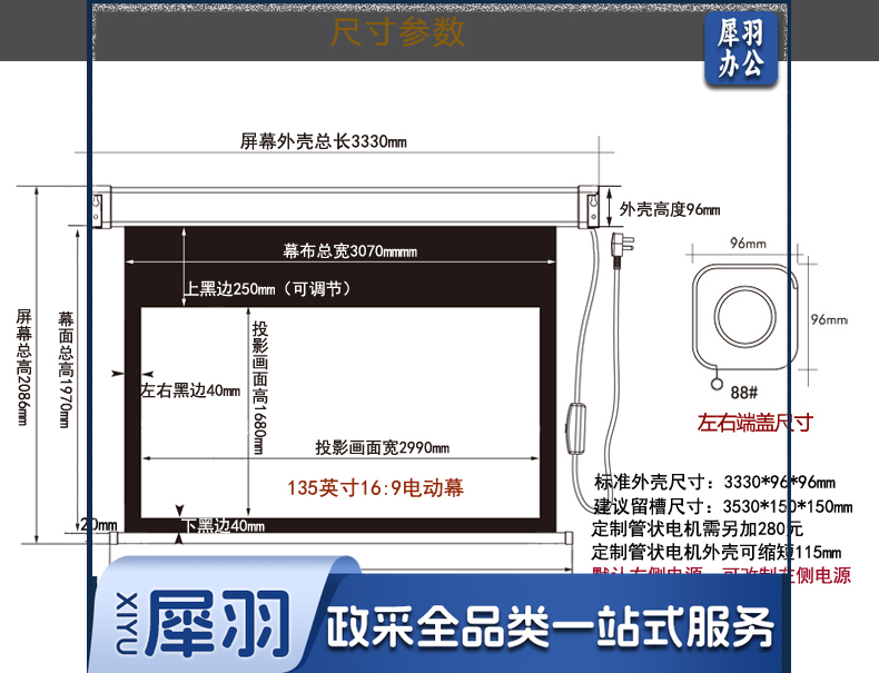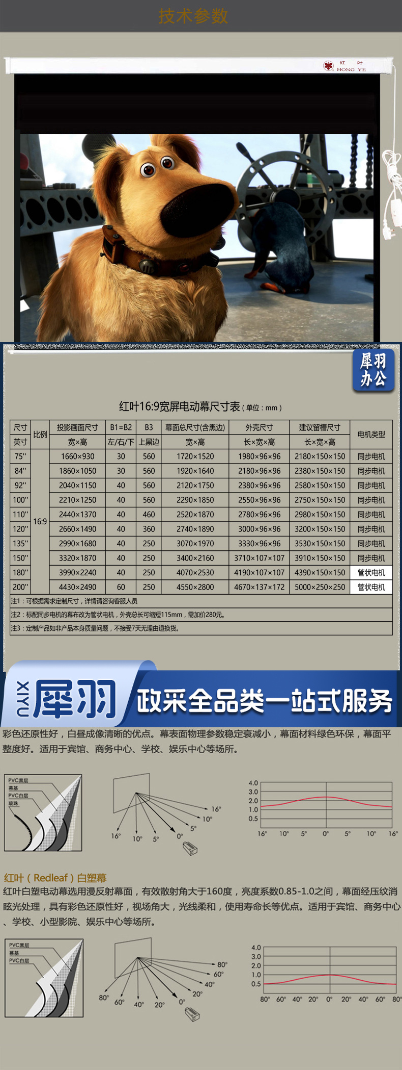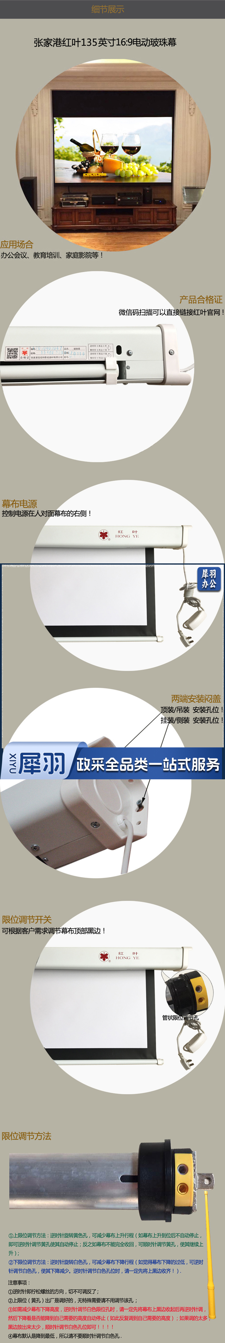 红叶(REDLEAF)135英寸16:9 电动玻珠投影幕 不含安装
