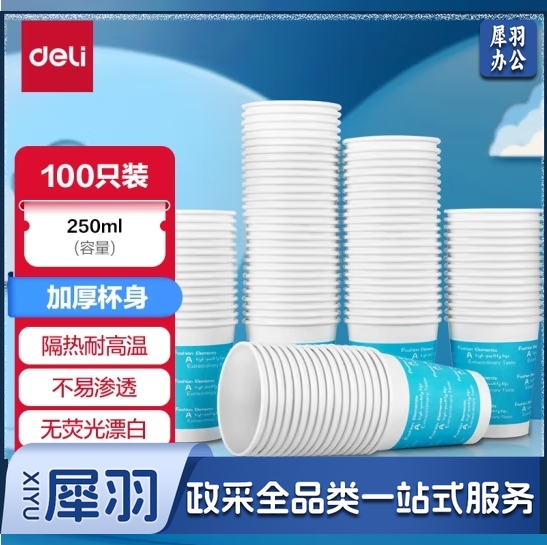 得力 9561纸杯250ml(蓝)(100个/袋) 1袋装