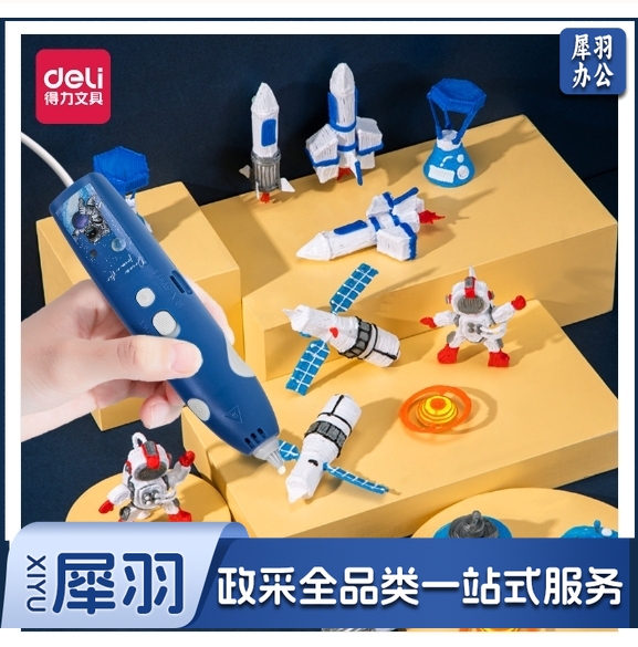 得力74855-中国航天3D绘画笔(蓝色)(1支绘画笔/盒) 儿童无线低温3D绘画笔 智能打印笔 儿童启蒙创意玩具