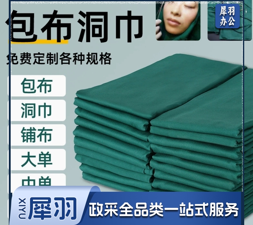 新生儿棉被套 纯棉手术包布洞巾墨绿可消毒铺巾孔巾双层单