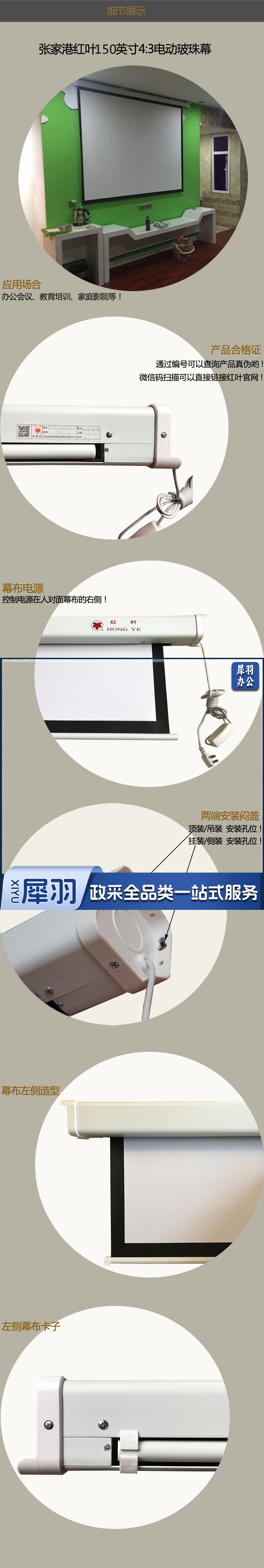 红叶(REDLEAF)150英寸4:3 电动玻珠投影幕 不含安装