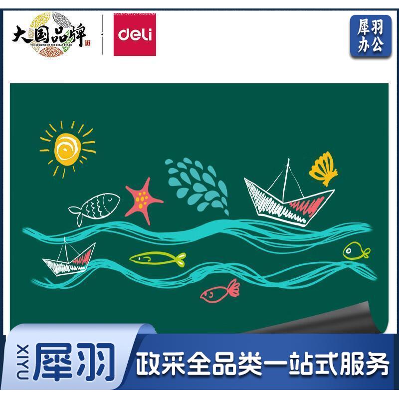 得力(deli)90*200cm家用软磁铁自粘白板贴可擦写墙贴/写字板/画板 涂鸦自粘墙纸 小黑板贴 带背胶绿板50133